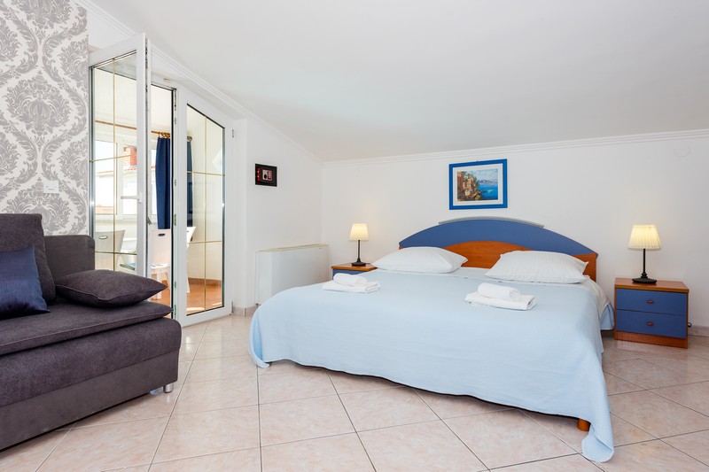 Studio 11 type 2+2 is located on the third floor and consists of a double bed and a double sofa bed, kitchen, bathroom and porch overlooking the sea and the old town of Primošten.