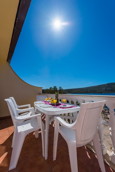 Apartment 4+1 is located on the second floor and consists of two bedrooms, a living room with a sofa bed for one person (160x200), a kitchen, a bathroom and a balcony with sea view. The kitchen is equipped with cooking and serving dishes.