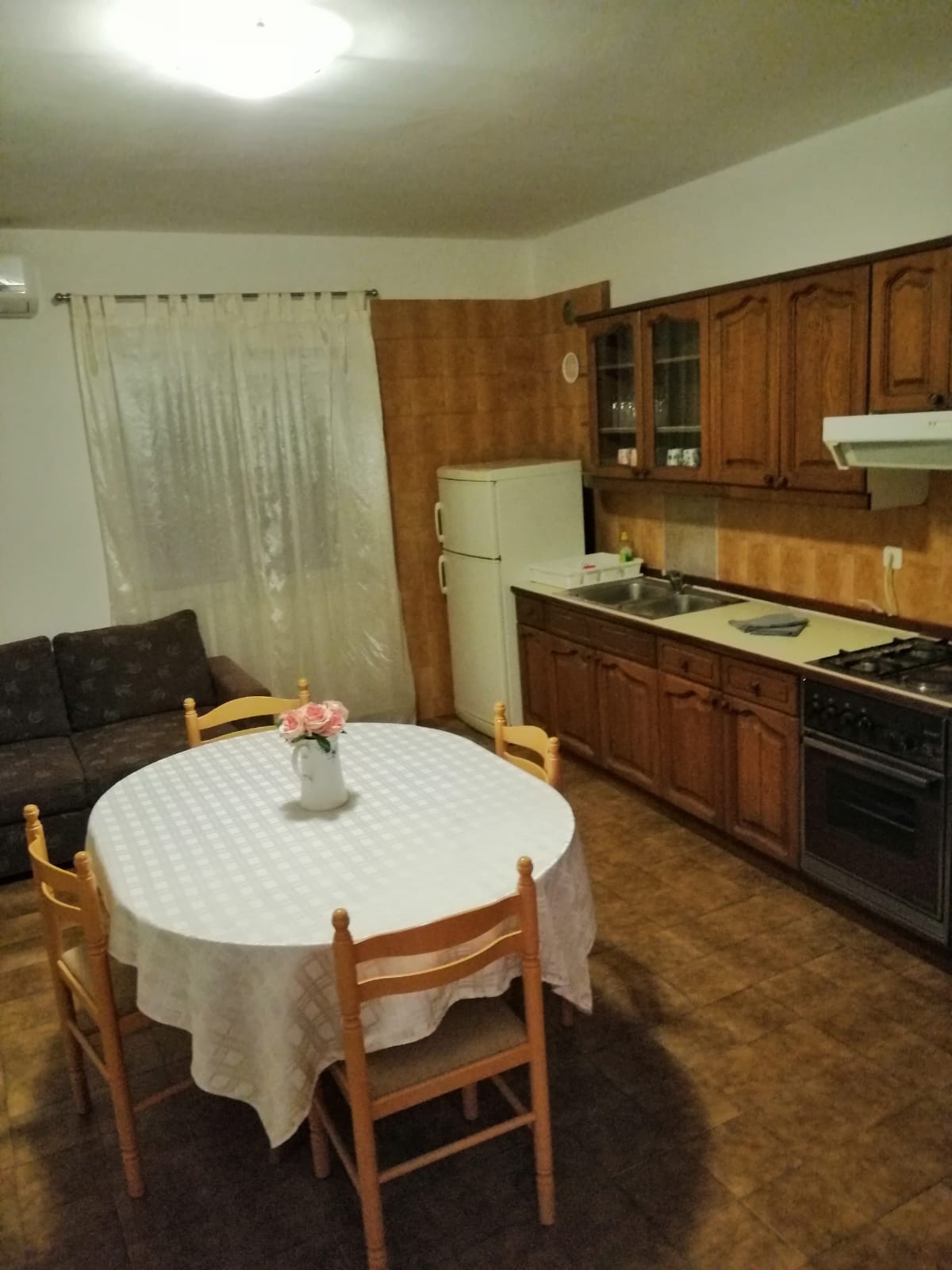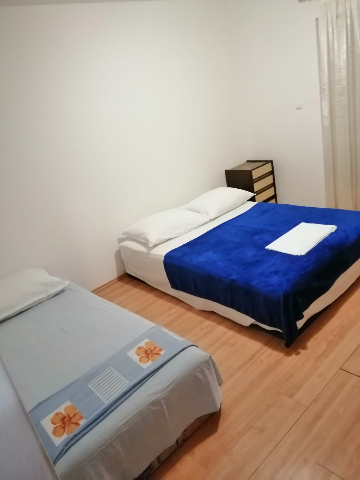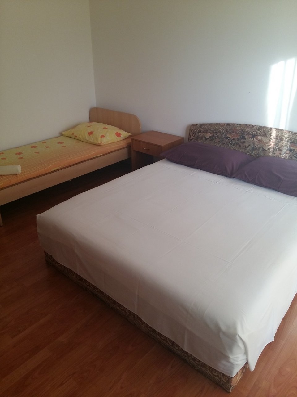 100m², four bedrooms with double beds, three with additional single bed, kitchen, living room with sofa bed, two bathrooms with WC, balcony, washing machine, air conditioning, SAT-TV, WLAN, parking