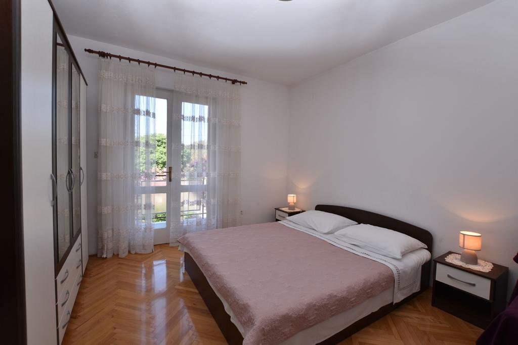 Four bedrooms with three double beds and one with two single beds, kitchen, living room, two bathrooms with WC, balcony, air conditioning, TV, first floor, parking space