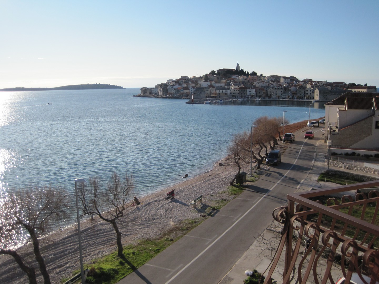 10 m from the sea and the beach, terrace with sea view and view on Primošten, kitchen, 2 bedrooms each one with double and own toilet-bathroom, air condition, SAT-TV, second floor, parking