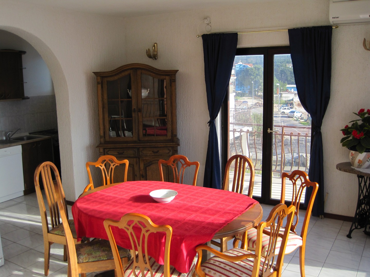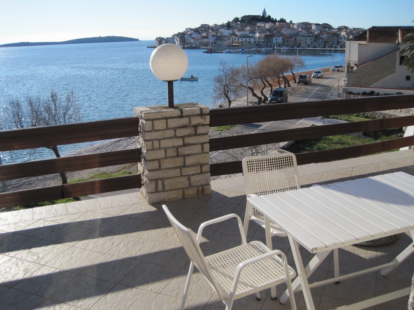 10 m from the sea and the beach, large terrace with sea view and Primošten, kitchen, 3 bedrooms each with double bed and with own toilet-bathroom, extra bed for two in the living room, air conditioning, SAT-TV, second floor, parking