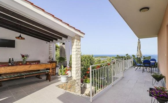 AP 1/6+2 Type: Apartment , Beds: 8 , extra beds: 1 , Bedrooms: 4 Bedroom 1: 1 Matrimonial bed Bedroom 2: 1 Matrimonial bed Bedroom 3: 1 Matrimonial bed Living room: 1 Extendable couch Apartment with balcony and sea view for 8 to 9 persons. More