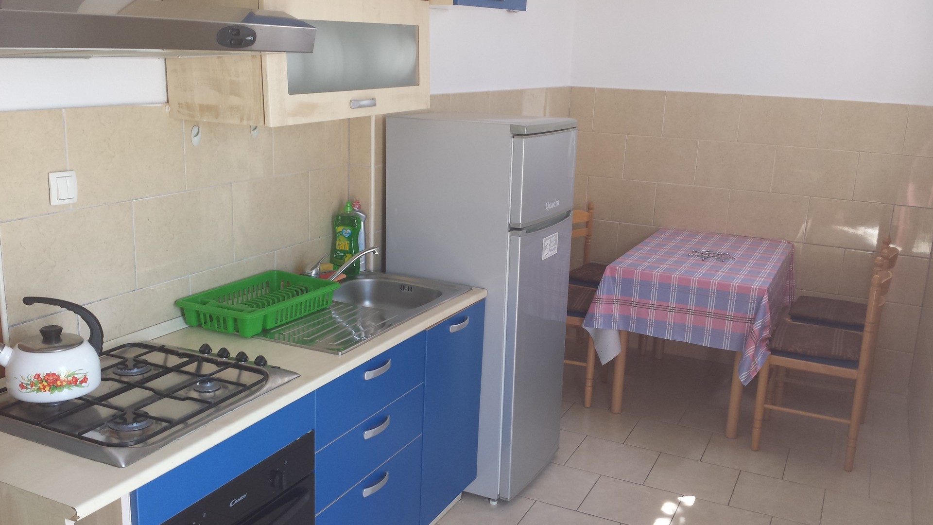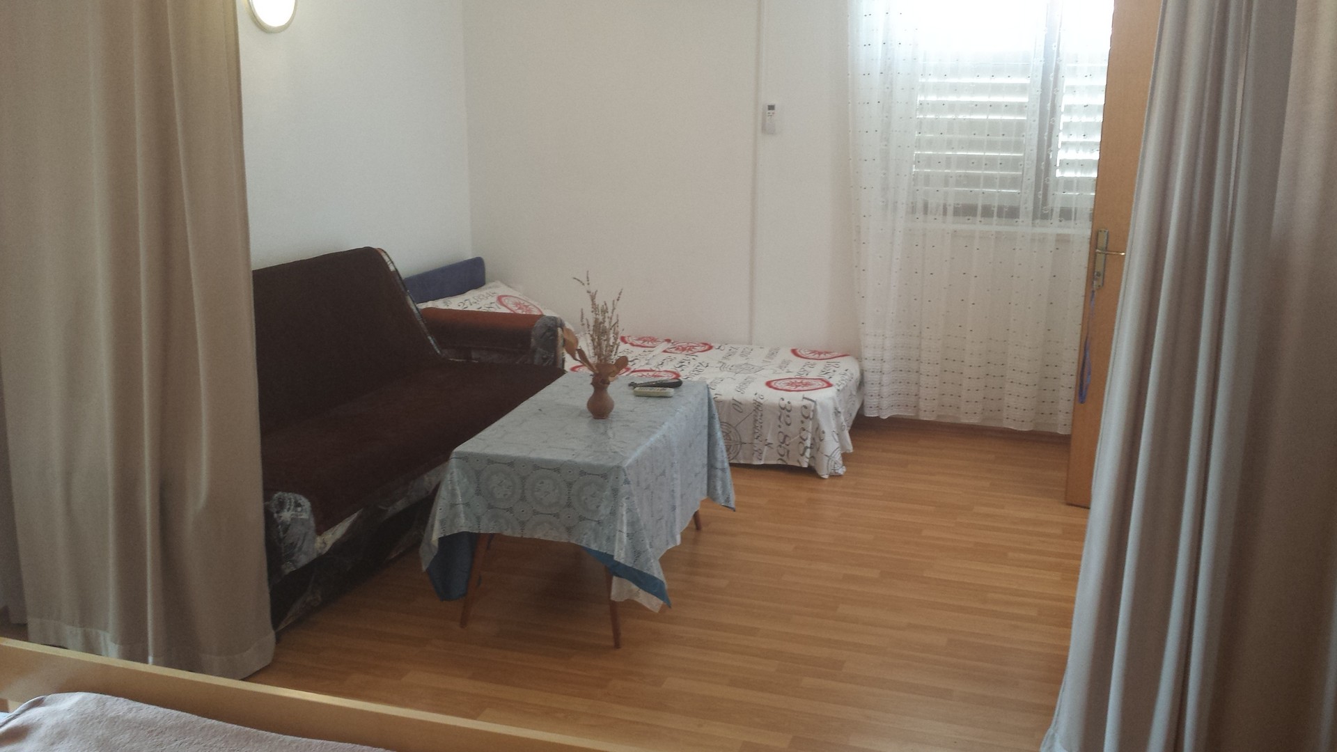 Bedroom with double bed, living room with two additional beds for one person, kitchen, bathroom with WC, balcony, air conditioning, TV, WiFi, second floor, parking