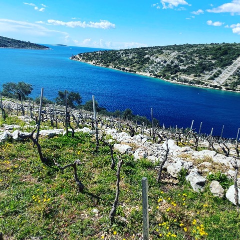 Arrivée au vignoble de Bucavac près de Marina Kremik (ce vignoble est sur la liste d'attente de l'UNESCO). Ici, nous avons l'occasion de voir des vignobles de plus de 60 ans, en bord de mer, qui avec leurs murs de pierres sèches dessinent des dentelles de pierre blanche, donnant un vin de qualité supérieure Babić. Nous nous familiarisons avec la méthode de traitement de la vigne.
