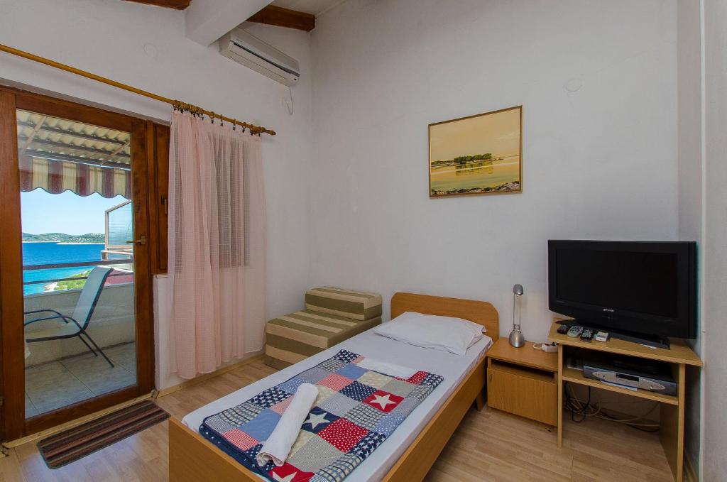 Appartement avec un lit double et un lit simple et un canapé-lit pour 1 personne.