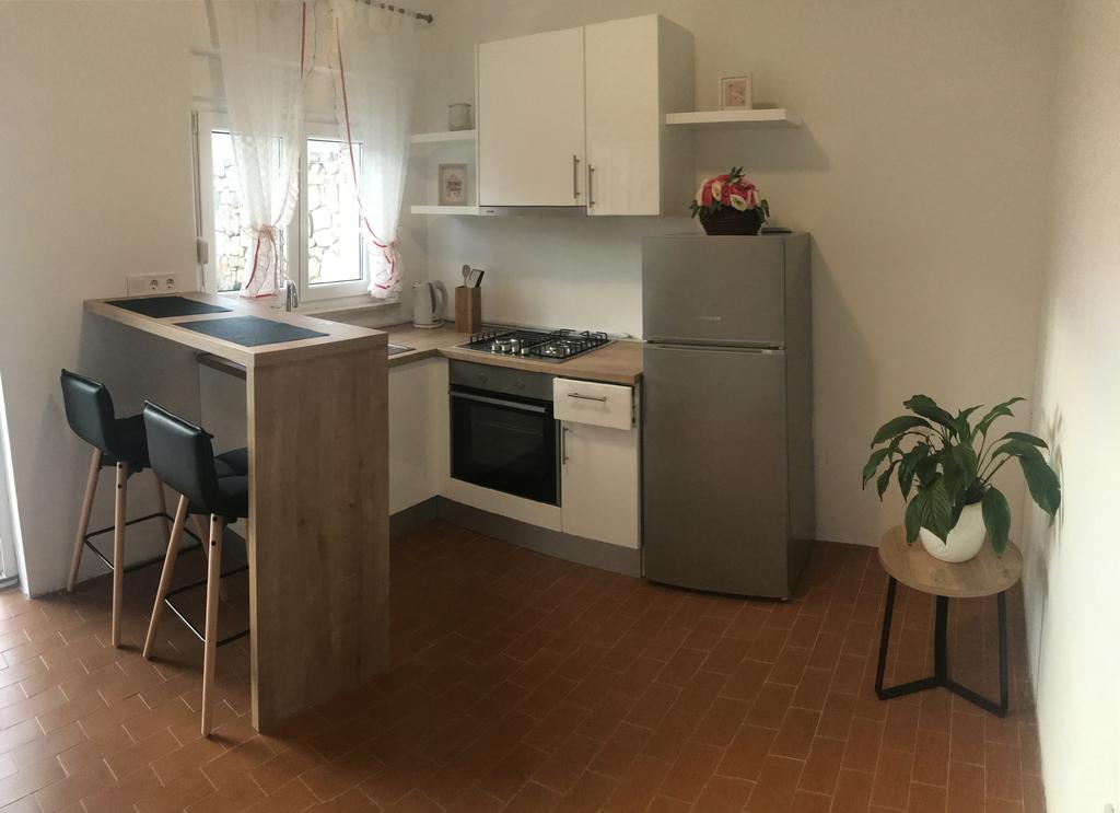 25m²; Chambre à coucher avec lit double, cuisine avec salle à manger, salle de bain avec toilette, terrasse, climatisation, TV, Wi-Fi, rez-de-chaussée, parking