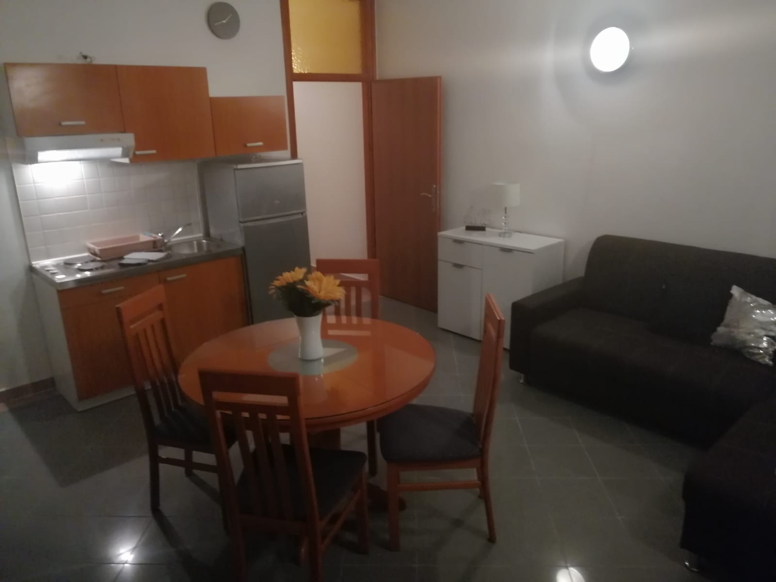 Spavaća soba s dva kreveta za po jednu osobu, dnevni boravak s kaučem na rasklapanje, kuhinja, kupaonica s WC-om, balkon, TV, wi-fi, parkirno mjesto