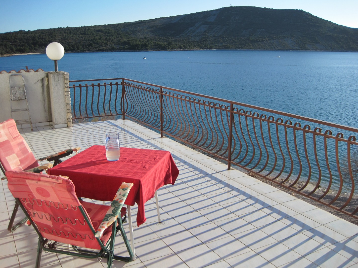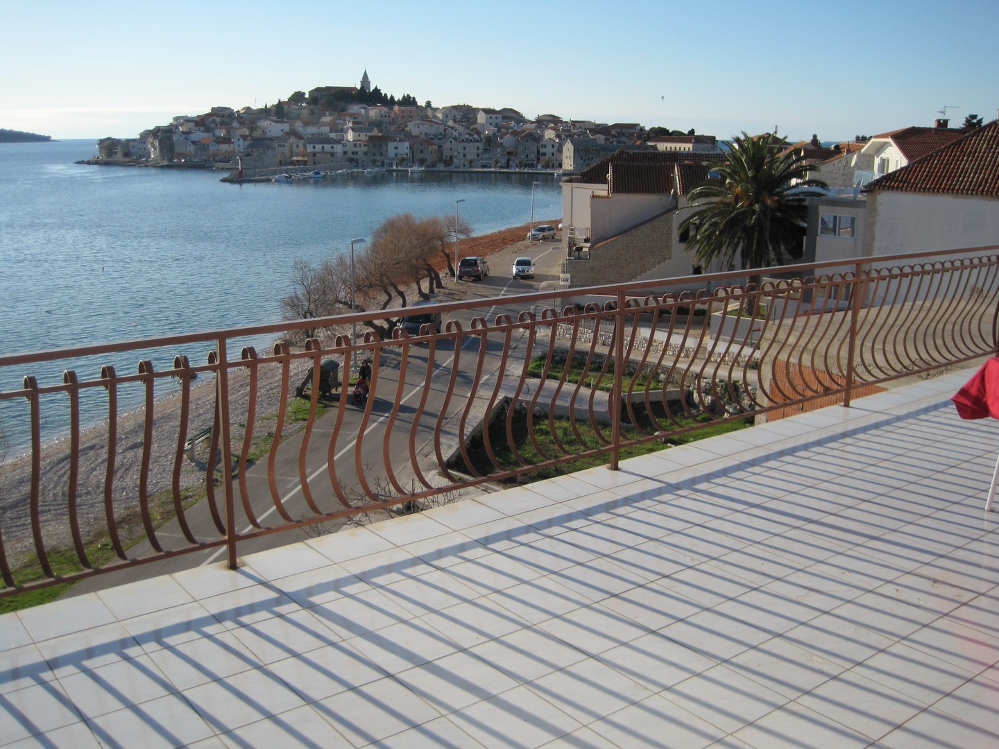 klima, SAT-TV, 10 m od mora i plaže, velika terasa sa pogledom na more i Primošten, kuhinja, bračni krevet, dodatni ležaj za dijete,WC-kupatilo, treći kat, parking