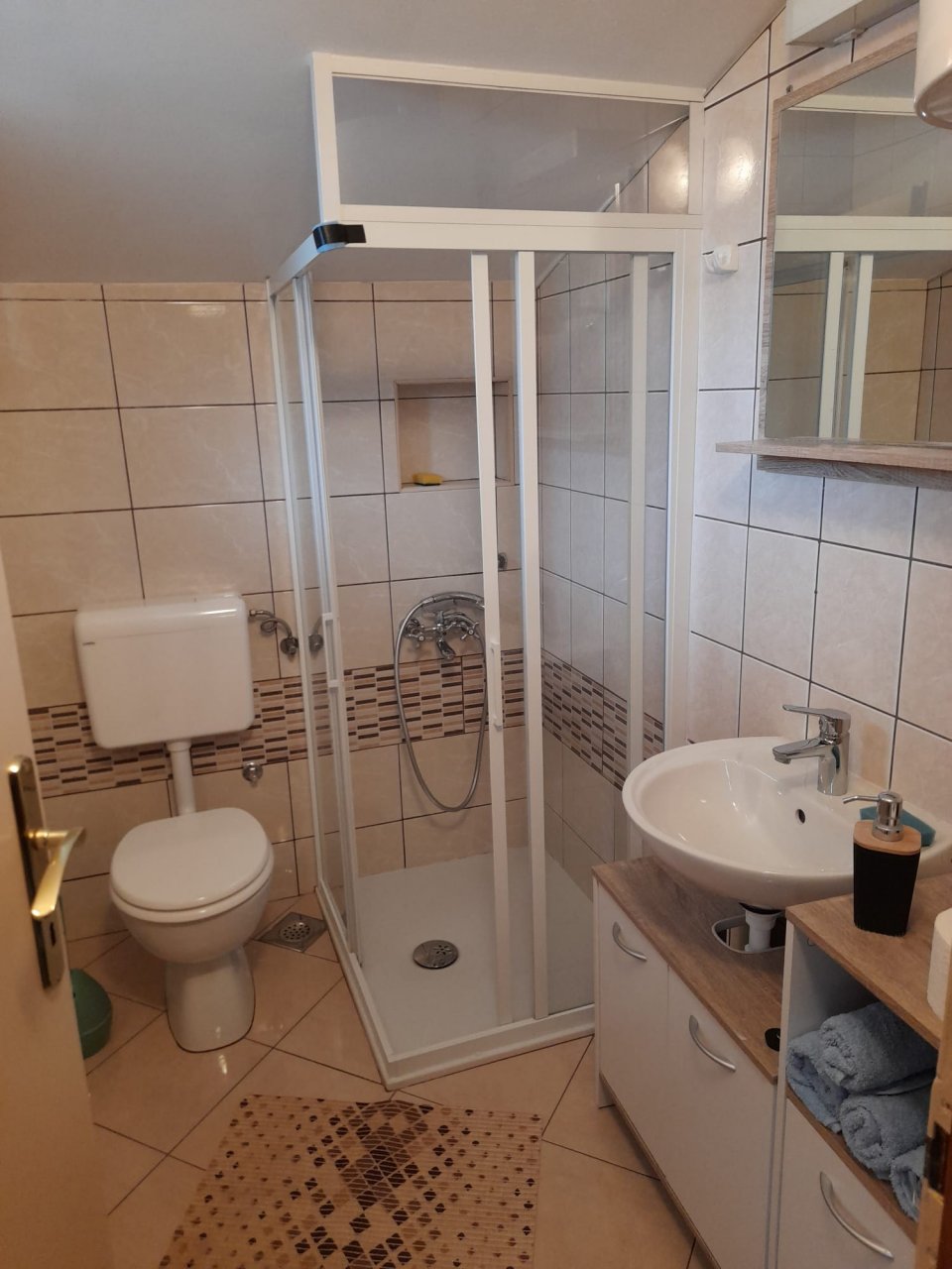 Izvrsna lokacija, na par minuta hoda od svih sadržaja: plaže, starog mjesta, restorana, dućana.