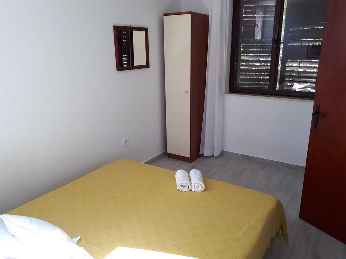 Apartman s terasom cca. 200 m od mora i cca. 300 m od centra Primoštena, dvije sobe sa bračnim krevetima, kuhinja, kupaonica s WC-om, klima, Sat-TV, Wi-Fi, prizemlje, parking