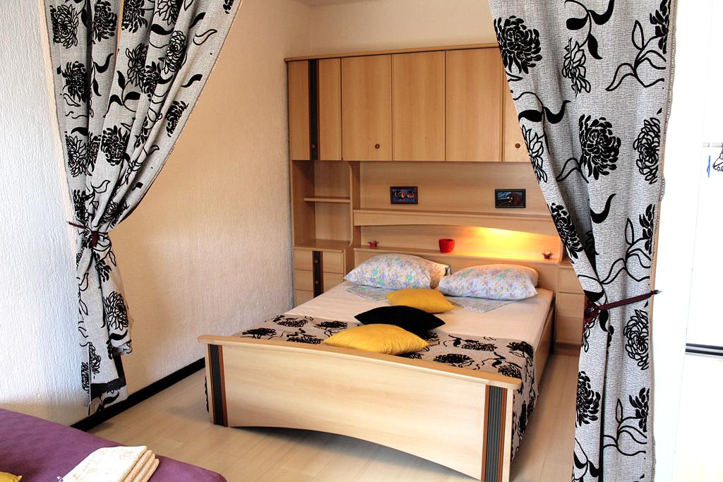 Studio apartman 35m², bračni krevet, krevet na rasklapanje, kuhinja s blagovaonicom, kupaonica s WC-om, balkon, klima uređaj, Sat-TV, wi-fi, parkirno mjesto