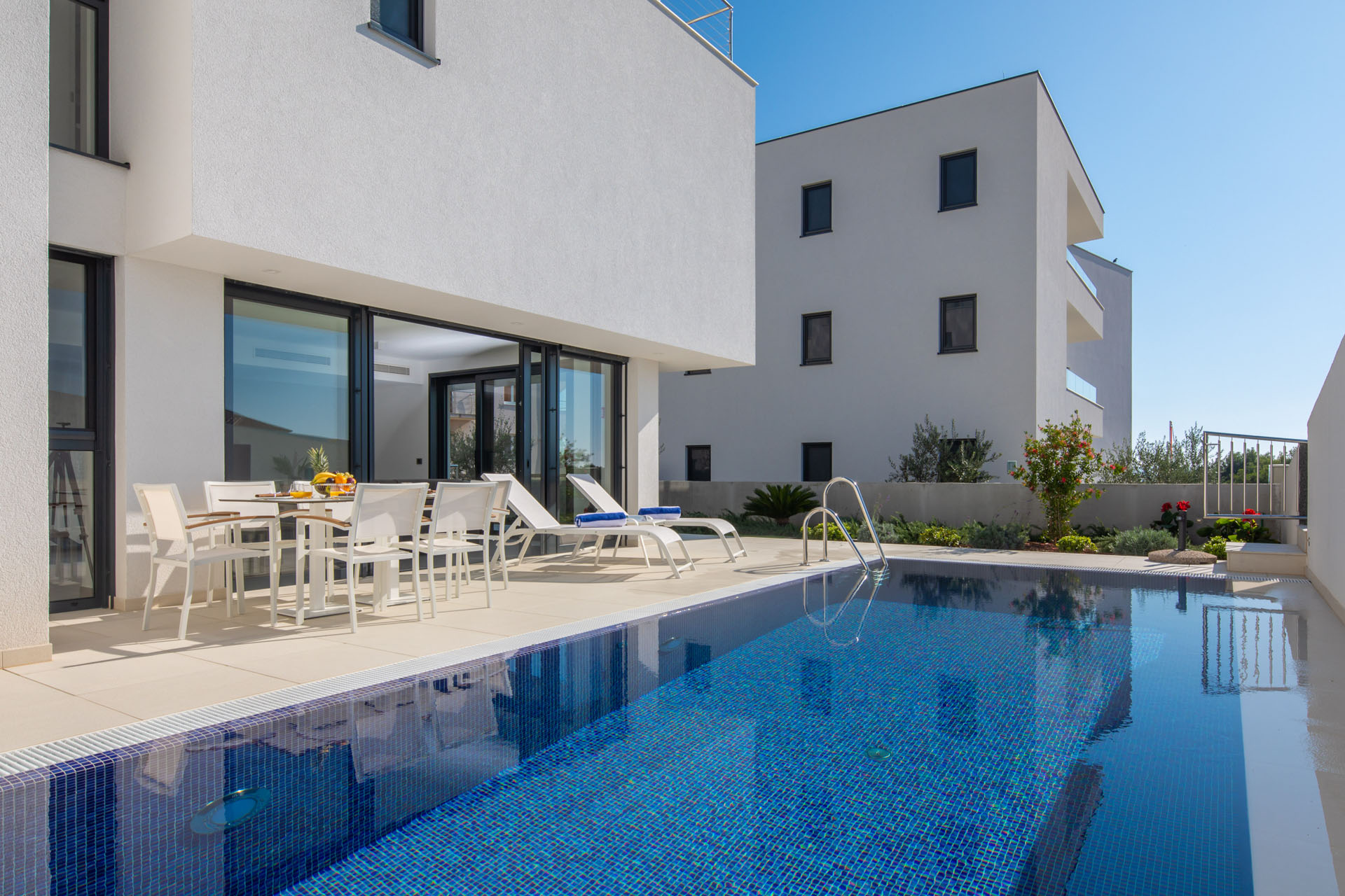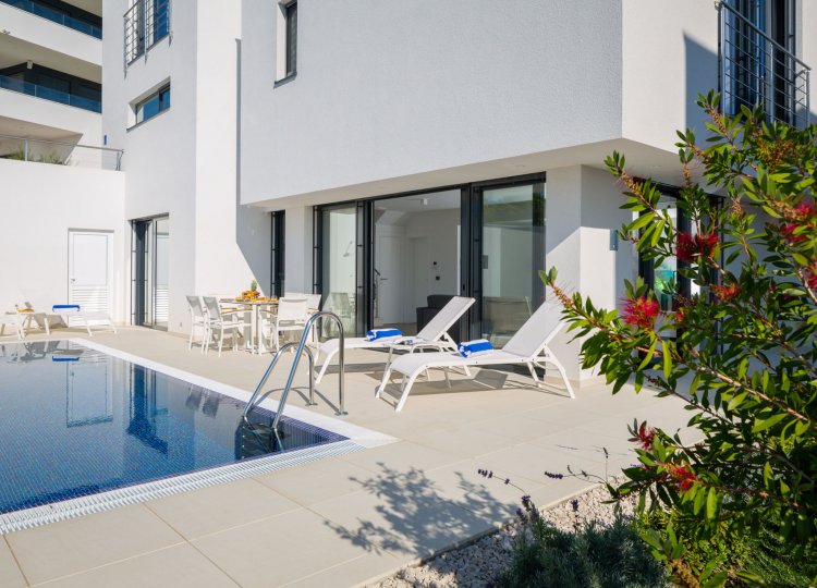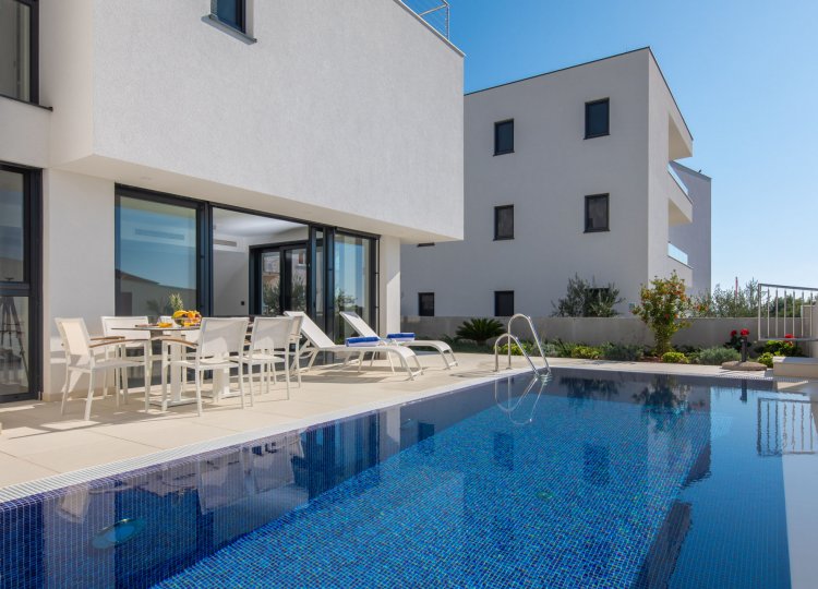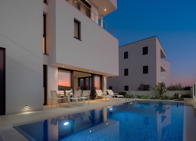 Ova novo sagrađena luksuzna vila u blizini Trogira, idealno je mjesto za obiteljski odmor.