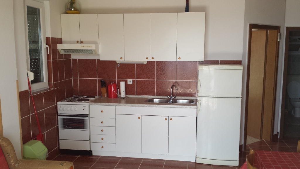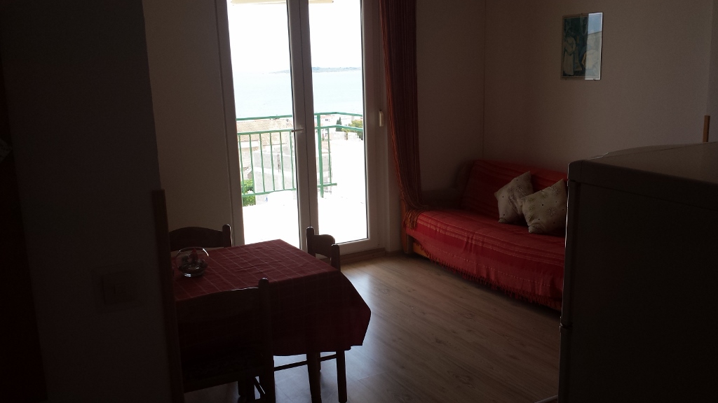 ca. 400 m dal mare e dalla spiaggia e ca. 500 m dal centro, balcone con vista mare, cucina, camera con letto in ottone, soggiorno con divano letto, WC-bagno, TV, aria condizionata, wi-fi, 2 ° piano, parcheggio