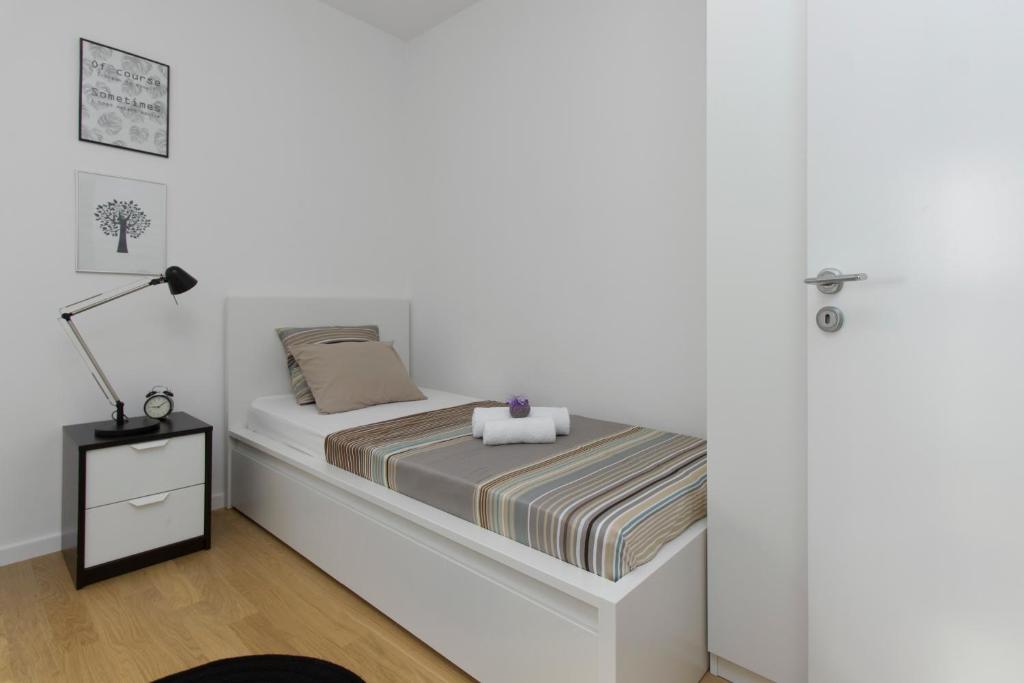 Apartament ten mieści się na 1. piętrze i dysponuje balkonem z widokiem na morze i miasto. Każda sypialnia ma własną klimatyzację. Do dyspozycji Gości jest również pralka.