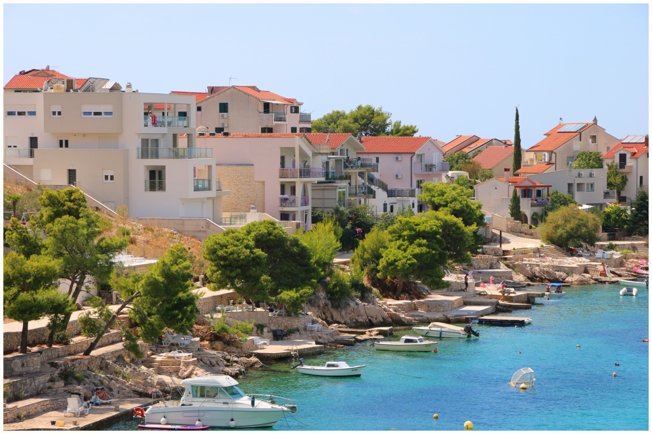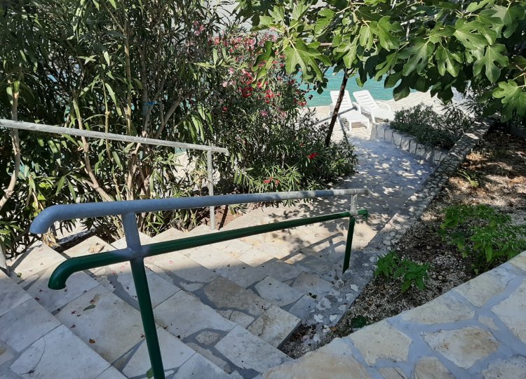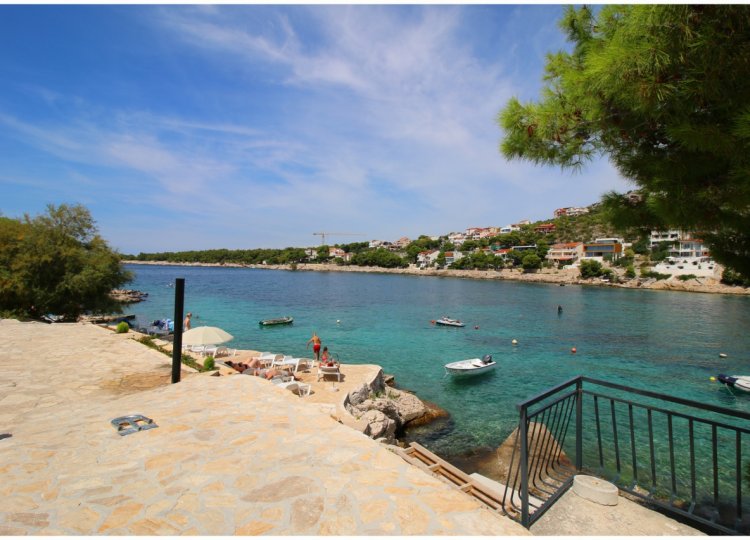 Apartments im Dorf Bilo, ca. 5 km von Primosten entfernt. Zweite Häuserreihe vom Meer entfernt, ca. 30 m vom Strand entfernt.