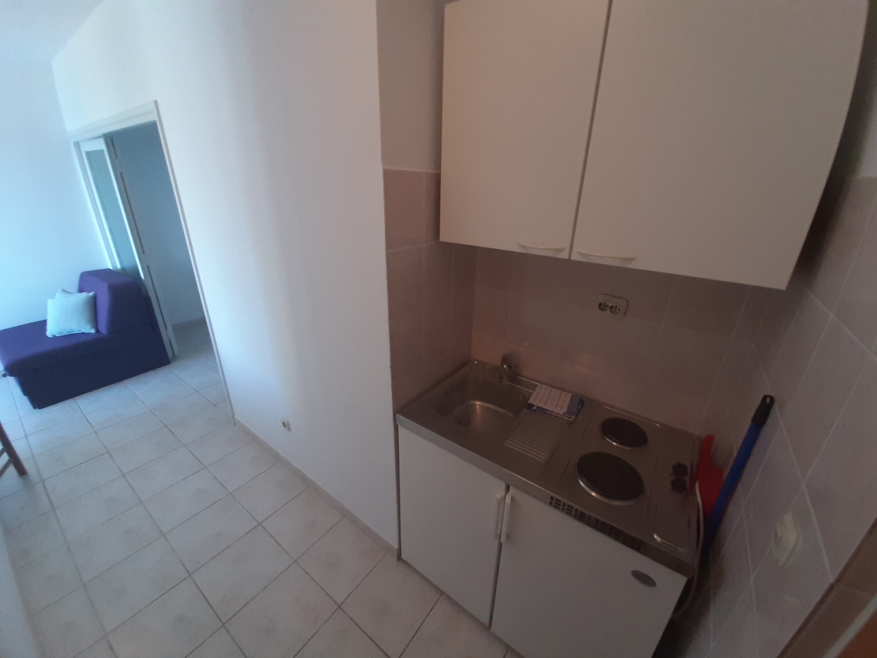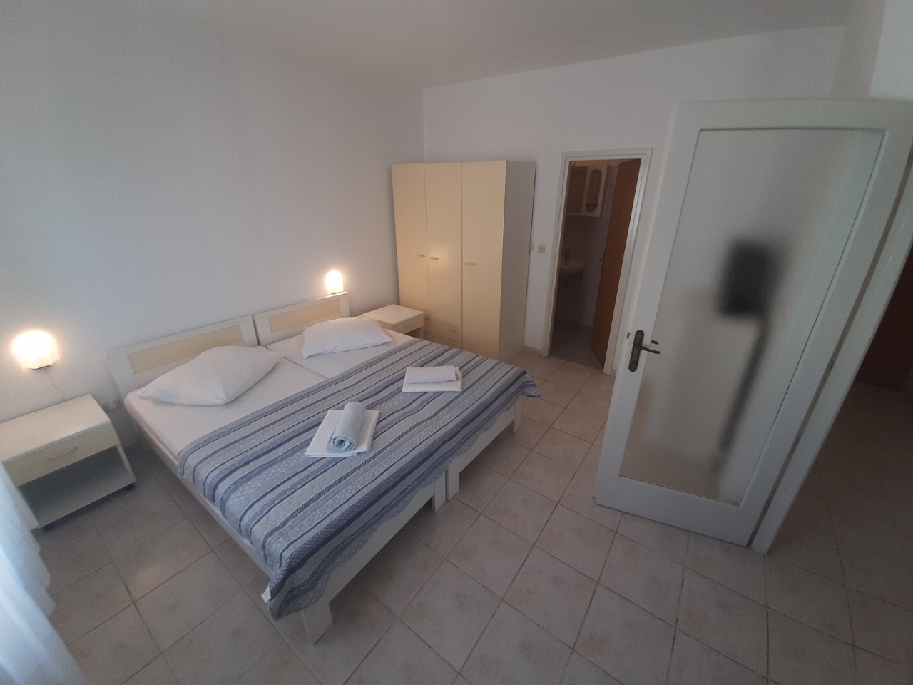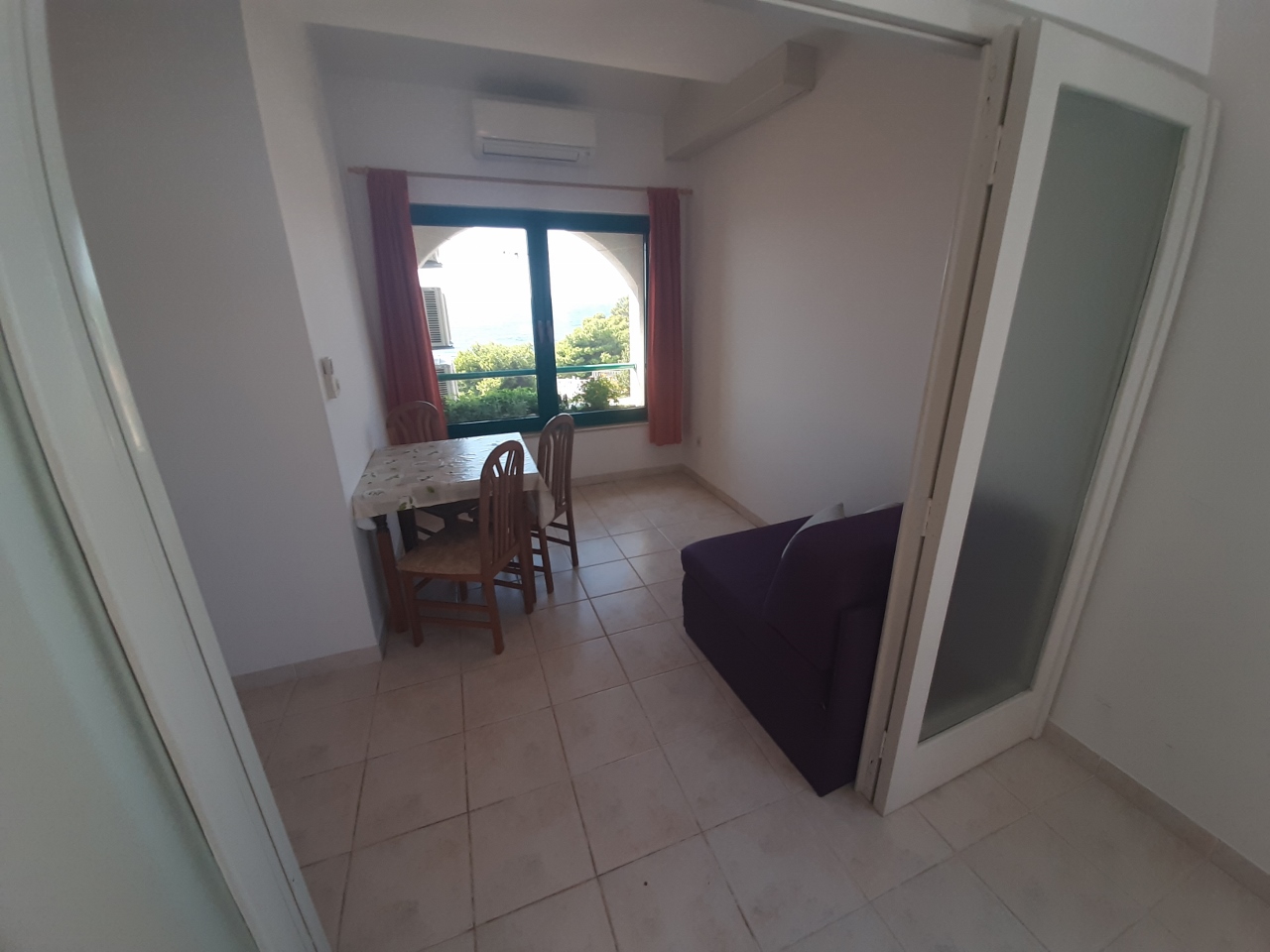 Separates Schlafzimmer mit Doppelbett, Wohnzimmer mit Schlafsofa für zwei Personen, Küche, Bad mit WC, Klimaanlage, TV, WLAN, Außengrill, erster Stock, Parkplatz.