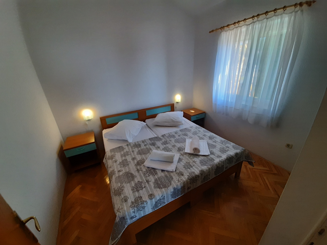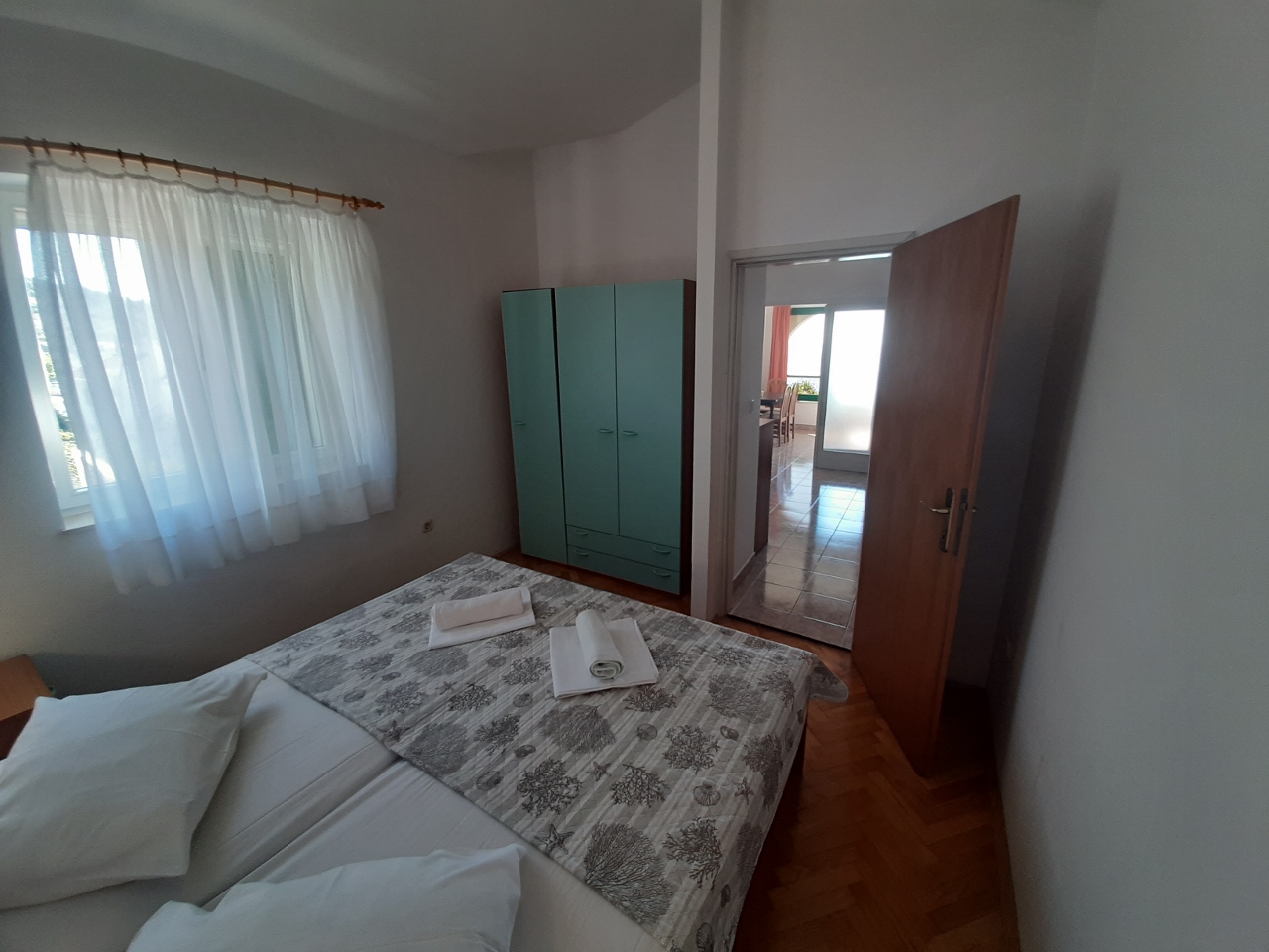 Separates Schlafzimmer mit Doppelbett, Wohnzimmer mit Schlafsofa für zwei Personen, Küche, Bad mit WC, Klimaanlage, TV, WLAN, Außengrill, 2. Etage, Parkplatz