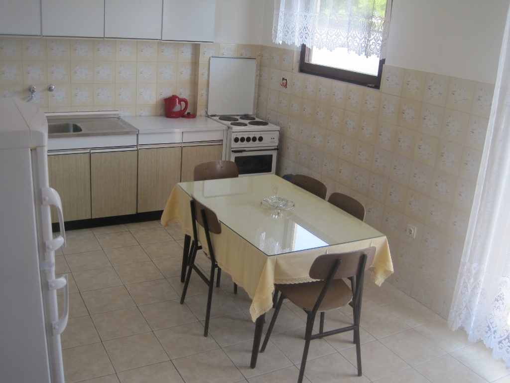 Zwei Schlafzimmer, eines mit einem Doppelbett und das andere mit zwei Einzelbetten, Küche mit Essbereich und Wohnzimmer mit Schlafsofa, Bad mit WC, Balkon, Klimaanlage, TV, WLAN, Grill im Freien, Erster Stock, Parkplatz