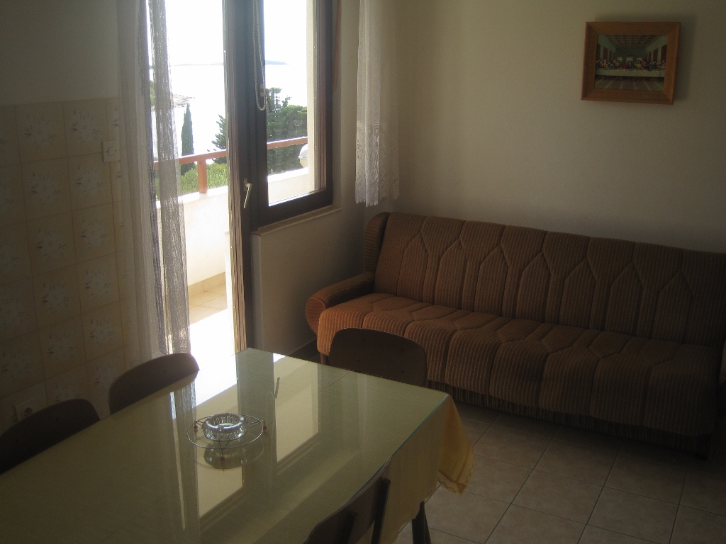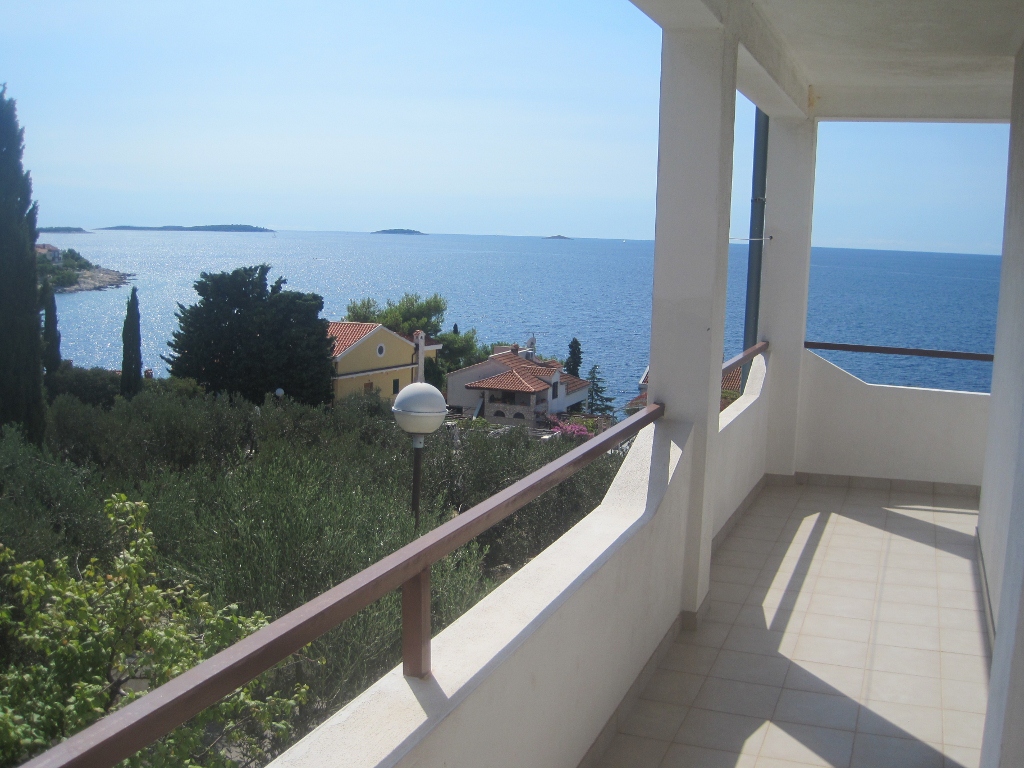 Ferienwohnung mit Balkon und offenem Meerblick für 4 bis 5 Personen.
