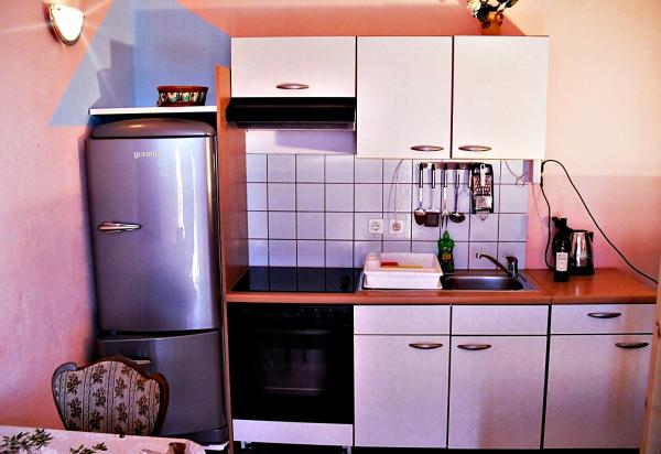 55m²; zwei Schlafzimmer mit Doppelbetten und ein Zusatzbett, Küche mit Esszimmer, Badezimmer mit WC, Balkon, WLAN, Parkplatz