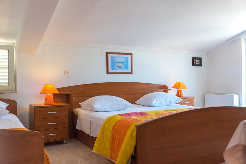 Studio 12 type 2+1 is located on the third floor and consists of a double bed and a single bed, a kitchen, a bathroom and a balcony with the sea view. The kitchen is equipped with cooking utensils and crockery.