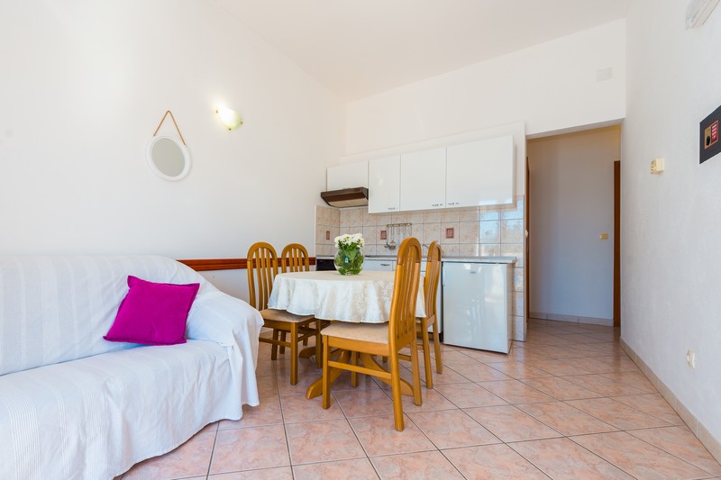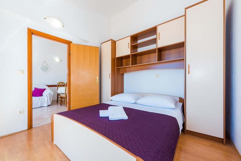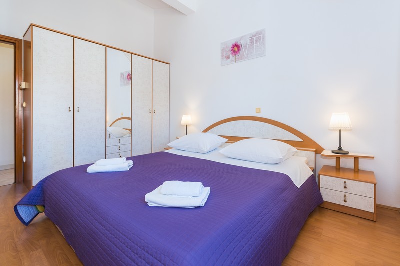 Apartment 4+1 is located on the second floor and consists of two bedrooms, a living room with a sofa bed for one person (160x200), a kitchen, a bathroom and a balcony with sea view. The kitchen is equipped with cooking and serving dishes.