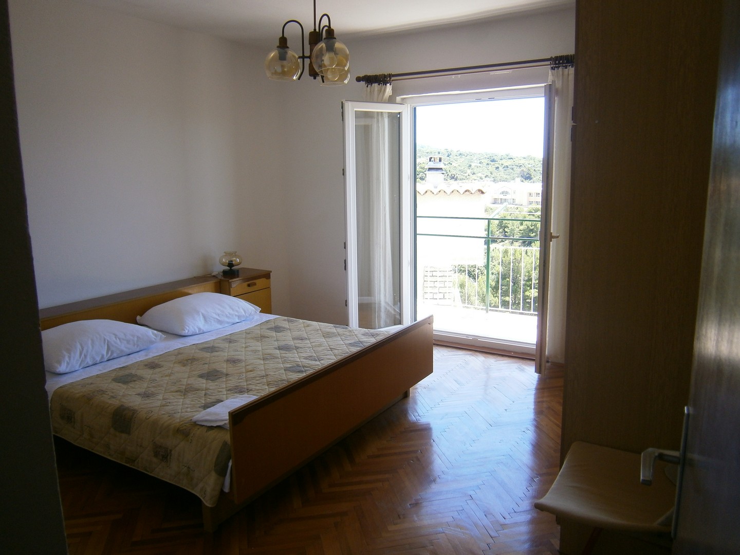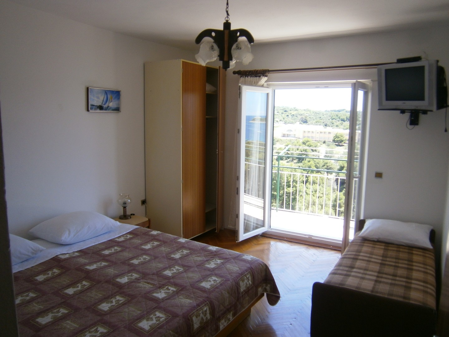 100m²; Four bedrooms with double beds, one with an additional single bed; Kitchen with dining room and living room with pull-out sofa, two bathrooms with toilet, balcony overlooking Primošten and the sea, air conditioning, TV, wireless internet, outdoor grill, parking; cca 400 m from the sea, beach and center of Primošten.