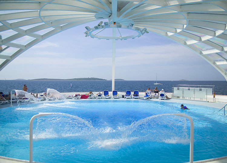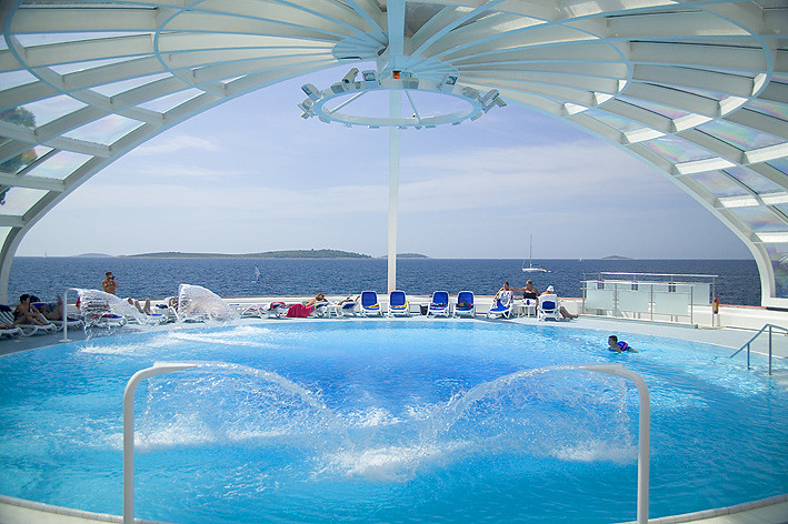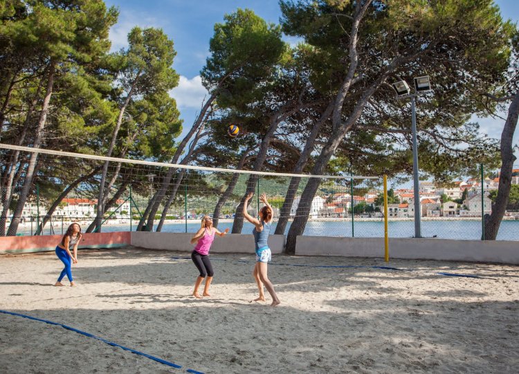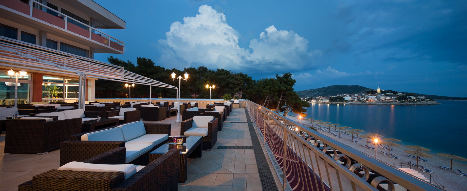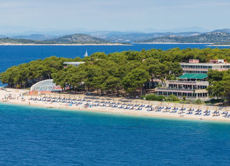 Upravo tu je i smješten hotel Zora, okružen sa stjenovitim i šljunčanim plažama duž kojih se proteže 800 m duga popločana šetnica uz more, u gustoj borovoj šumi. Upravo sa ovog djela prekrasan je pogled, s jedne strani na stari dio Primoštena, a s druge strane na nezaboravan zalaza sunca.