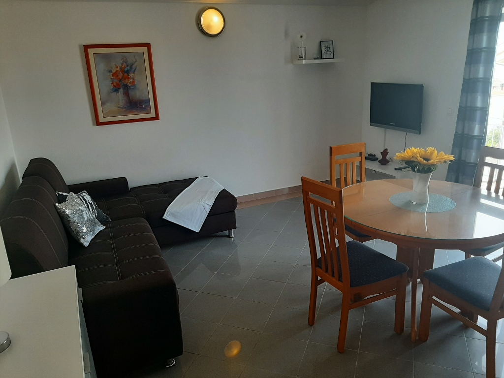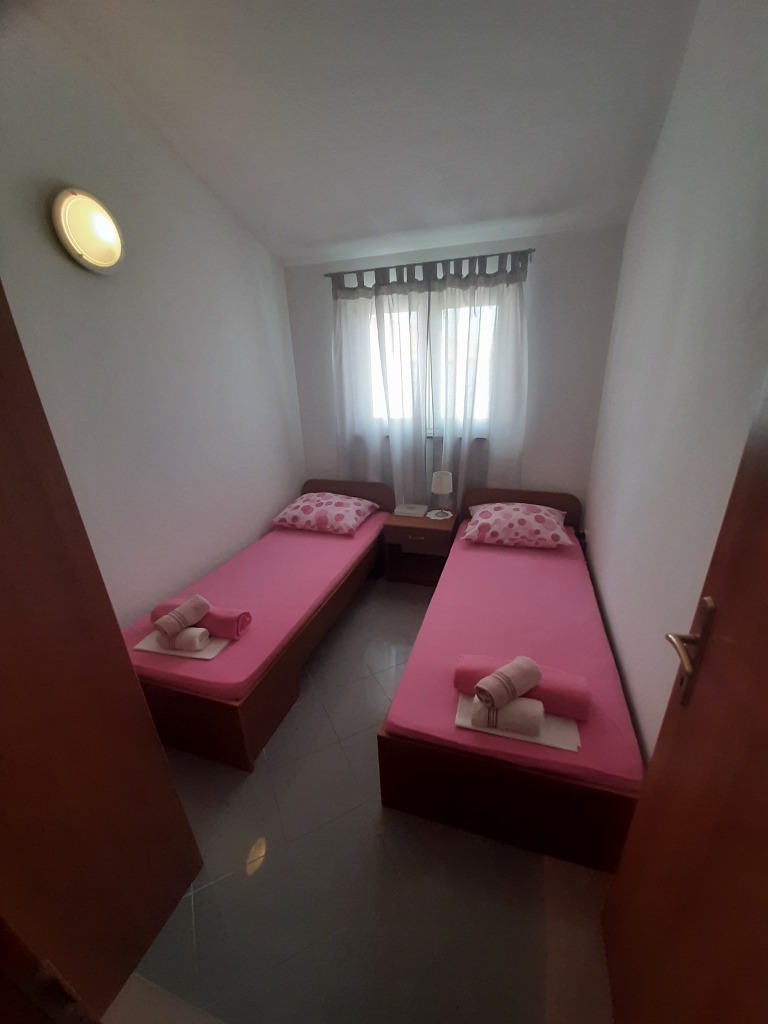 Spavaća soba s dva kreveta za po jednu osobu, dnevni boravak s kaučem na rasklapanje, kuhinja, kupaonica s WC-om, balkon, TV, wi-fi, parkirno mjesto