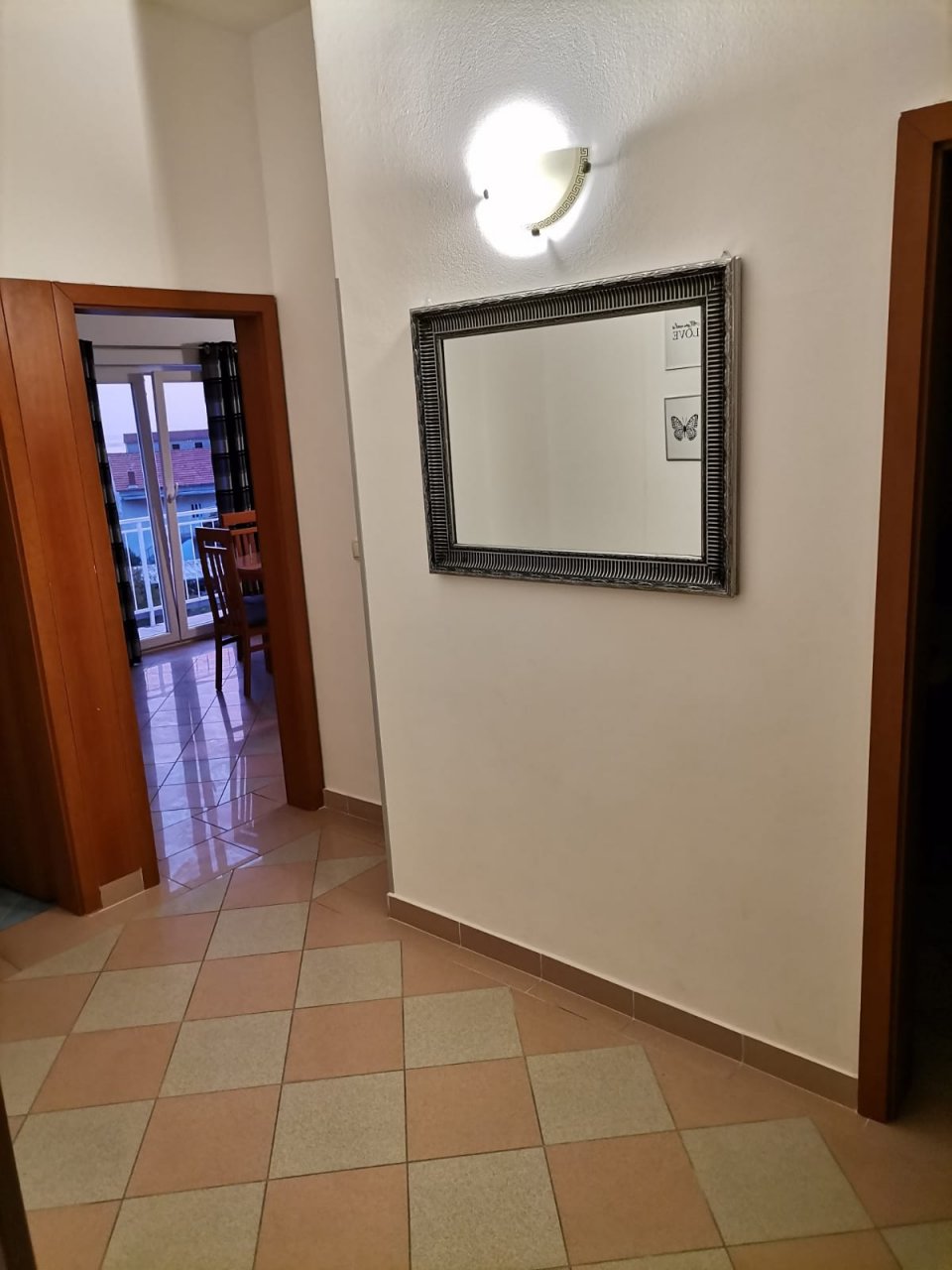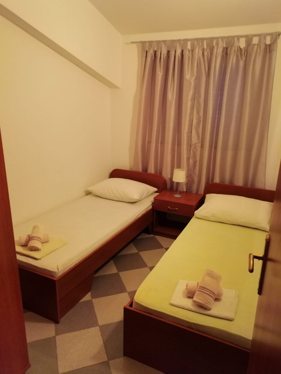 3 spavaće sobe, jedna spavaća soba s bračnim krevetom, dvije spavaće sobe s po dva kreveta za jednu osobu, kuhinja, kupaonica s WC-om, balkon, klima urađaj, TV, wi-fi, parkirno mjesto