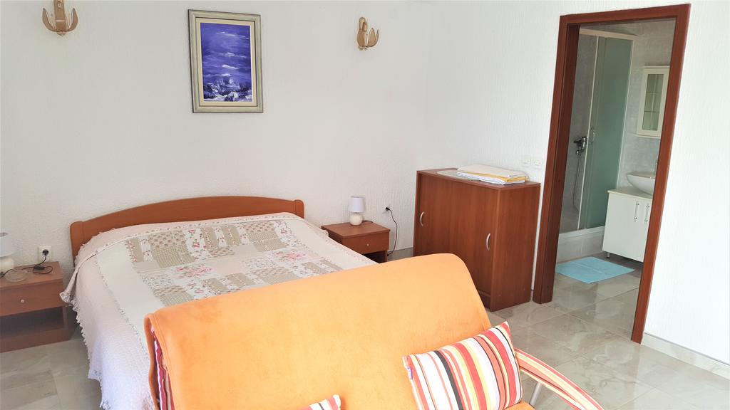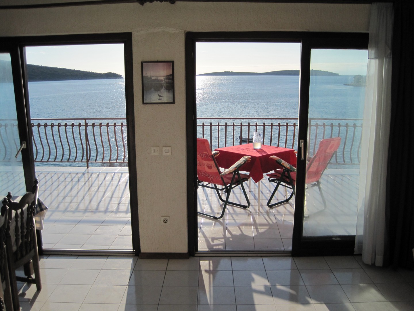 klima, SAT-TV, 10 m od mora i plaže, velika terasa sa pogledom na more i Primošten, kuhinja, bračni krevet, dodatni ležaj za dijete,WC-kupatilo, treći kat, parking