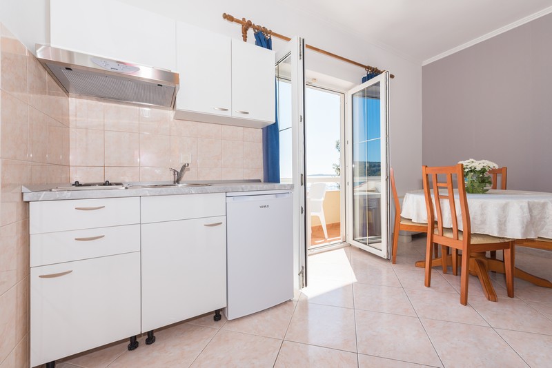 Apartman 10 je tip apartmana 2+2. Nalazi se na drugom katu, a sastoji se od jedne spavaće sobe, kuhinje, dnevne sobe s kaučem na razvlačenje za dvije osobe (160x200), kupaonice i balkona s pogledom na more. Kuhinja nema pečnicu, a opremljena je posuđem za kuhanje i posluživanje.