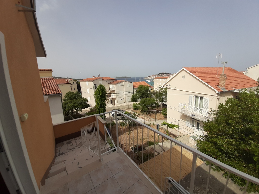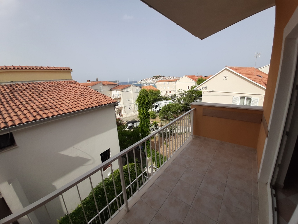 Balkon sa pogledom na more i na dio starog mjesta Primoštena.
