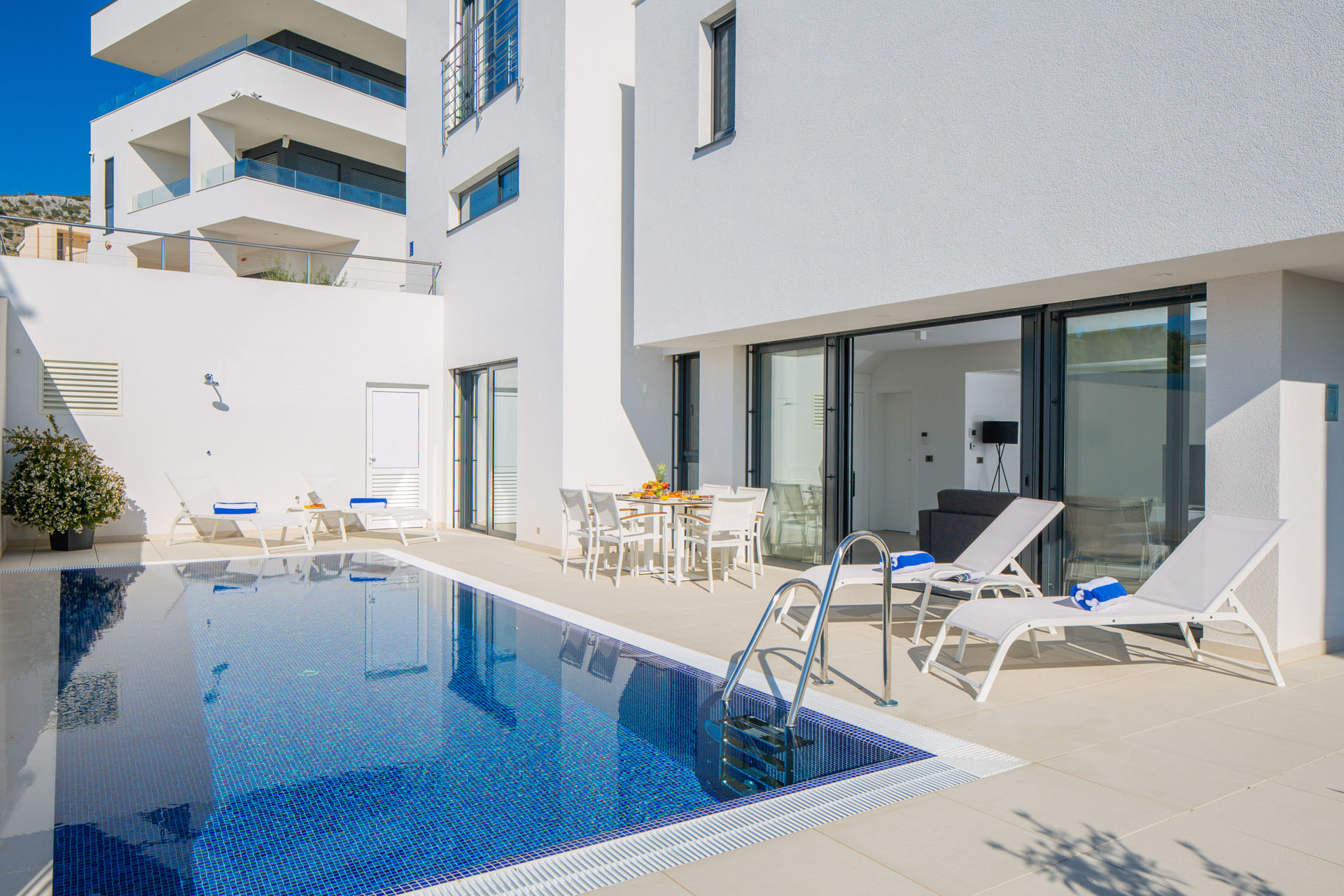 Ova novo sagrađena luksuzna vila u blizini Trogira, idealno je mjesto za obiteljski odmor.