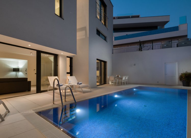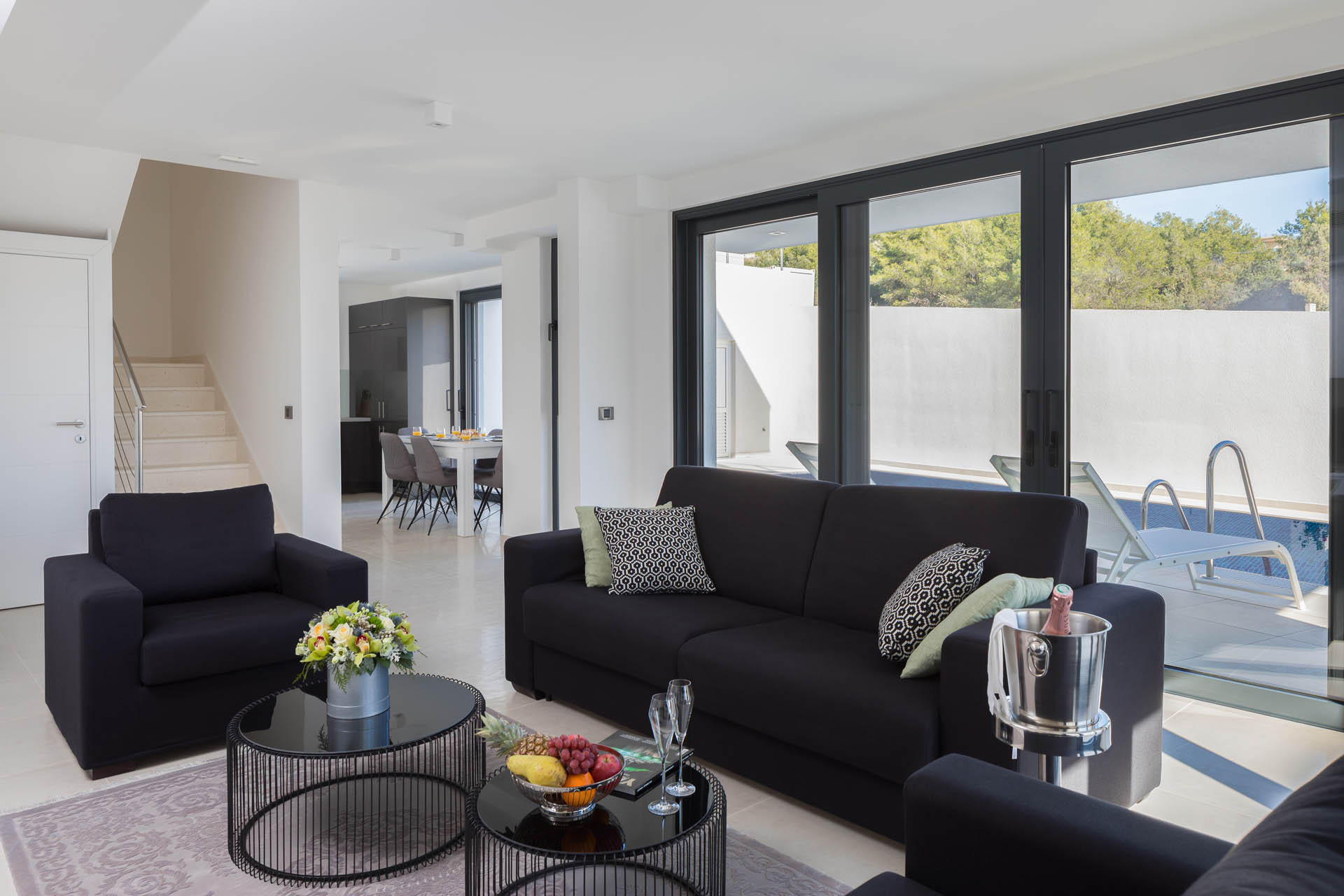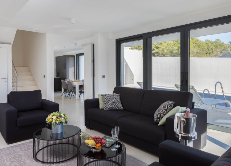 Na 185 m2, nalaze se prizemlje i dva kata. Prizemlje vile je zamišljeno kao otvoreni prostor između objekta