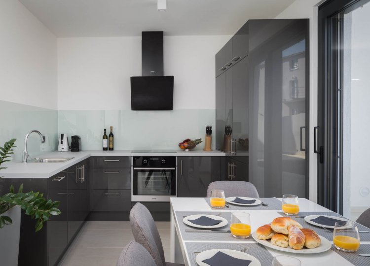 i neposredne okoline. U prizemlju se nalazi minimalistički opremljena kuhinja sa salonom, punim dnevnog svjetla i sa izlazom na
