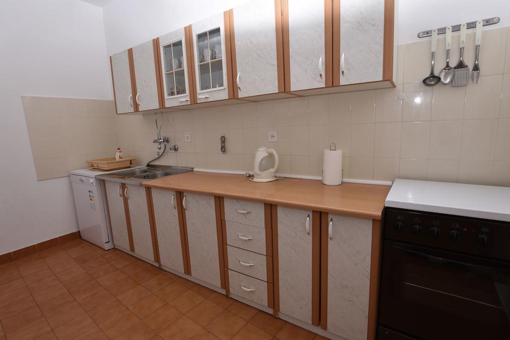 Quattro camere da letto con tre letti matrimoniali e una con due letti singoli, cucina, soggiorno, due bagni con WC, balcone, aria condizionata, TV, primo piano, posto auto