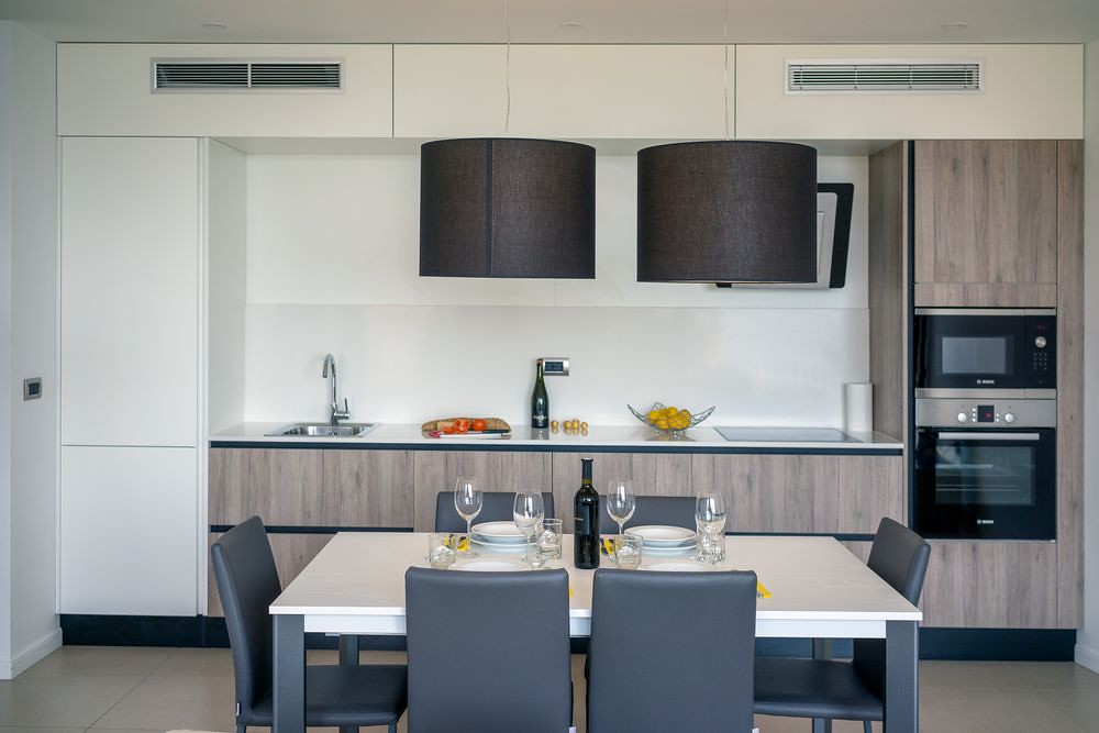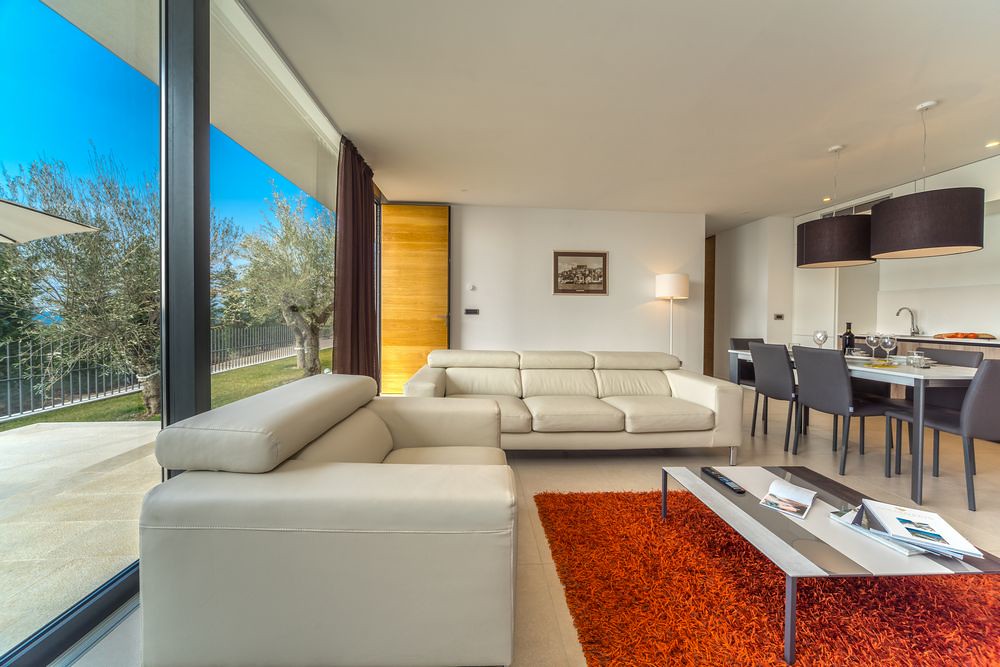 Soggiorno / sala da pranzo, TV satellitare / LCD si apre sul verde giardino di ulivi (vista mare). Cucina aperta (piano cottura in vetroceramica a 4 fuochi, forno, congelatore, forno a microonde, lavastoviglie, lavatrice). Due bagni con doccia e servizi igienici.