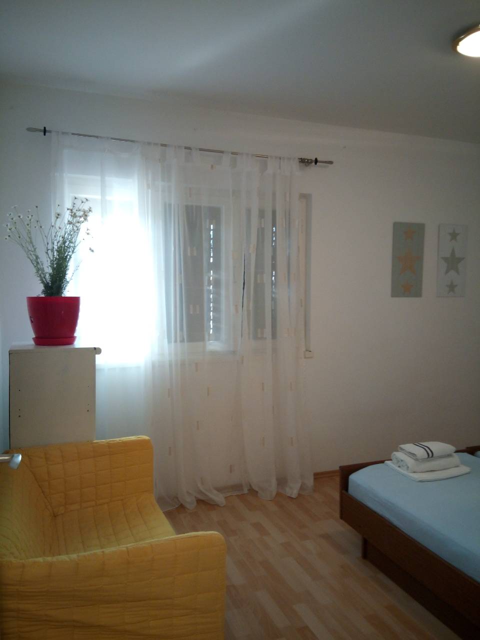 L'appartamento dista circa 200 m dal mare e circa 300 m dal centro di Primošten, due camere da letto separate con letti matrimoniali, cucina, letto aggiunto nel soggiorno per 1 persona, bagno con wc, balcone, aria condizionata, TV, Wi-F, parcheggio