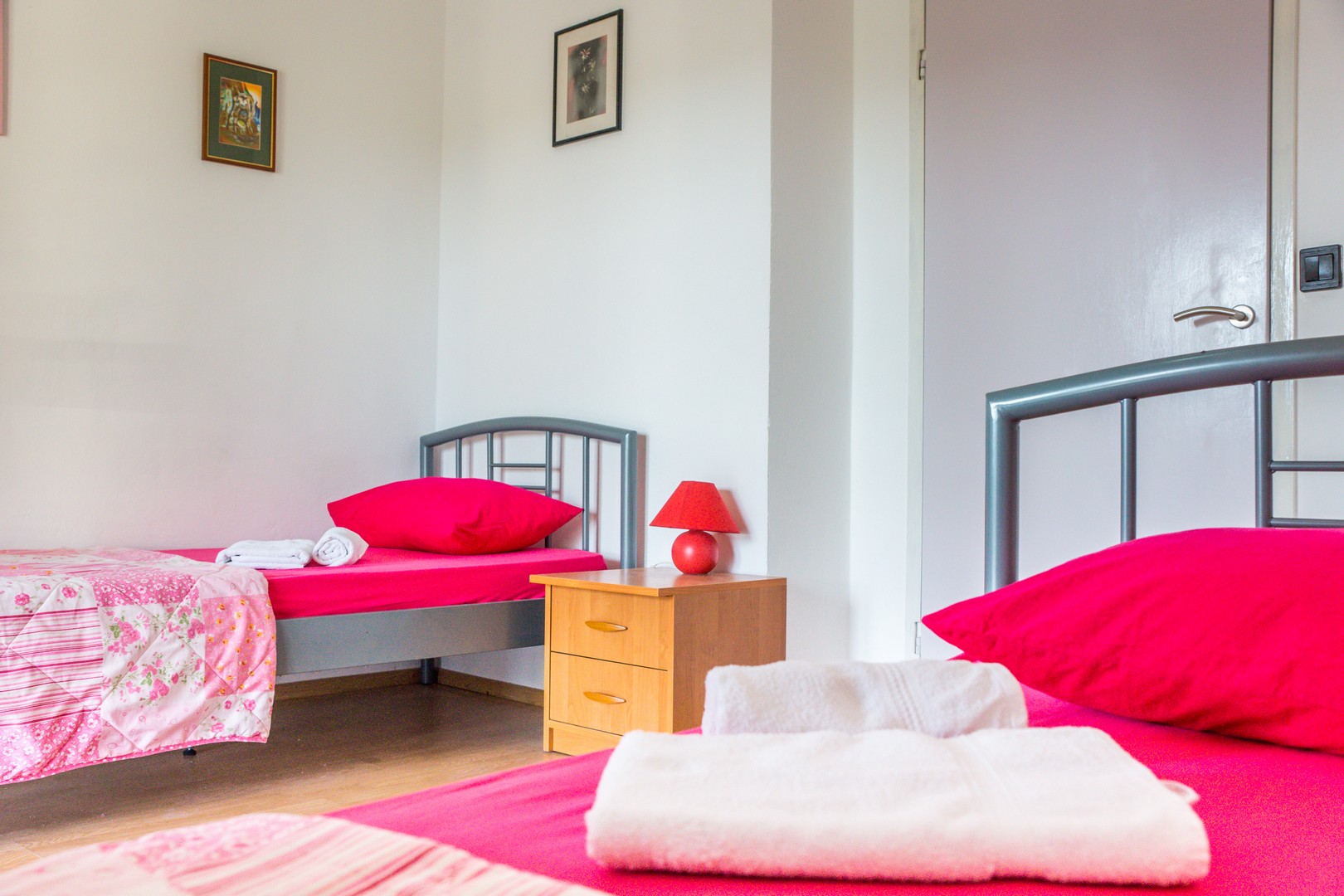 110m²; tre camere da letto, due con letti matrimoniali e una con due letti singoli; Soggiorno con divano letto, cucina con zona pranzo; due bagni, ampio terrazzo, aria condizionata, TV satellitare, wifi, piano rialzato, parcheggio