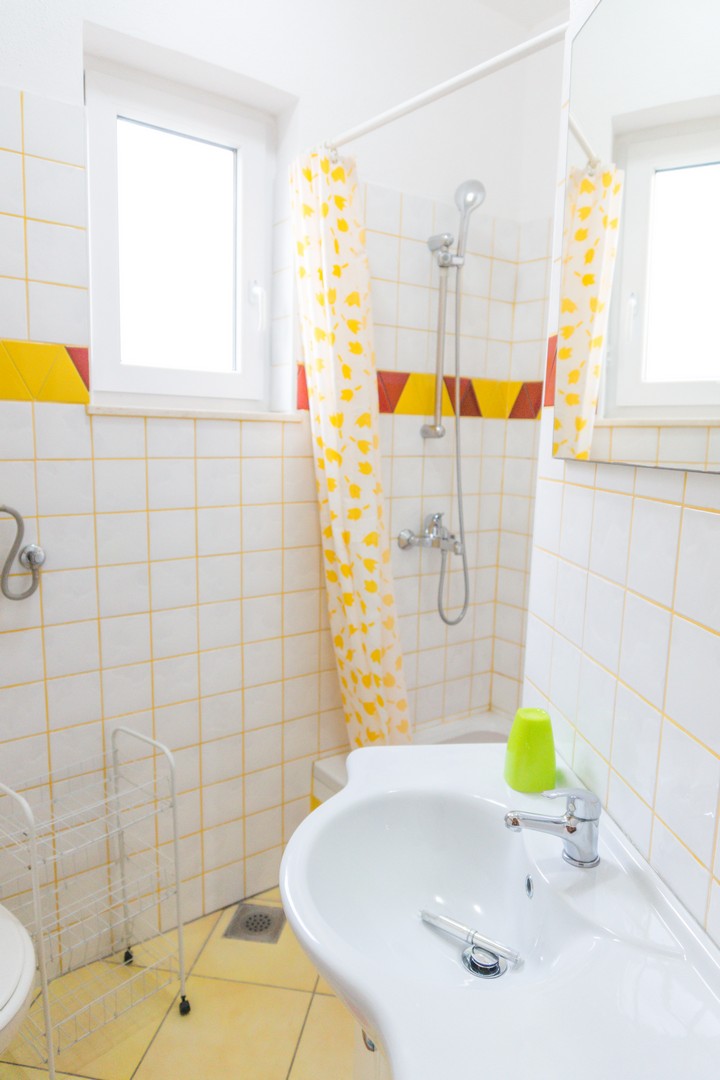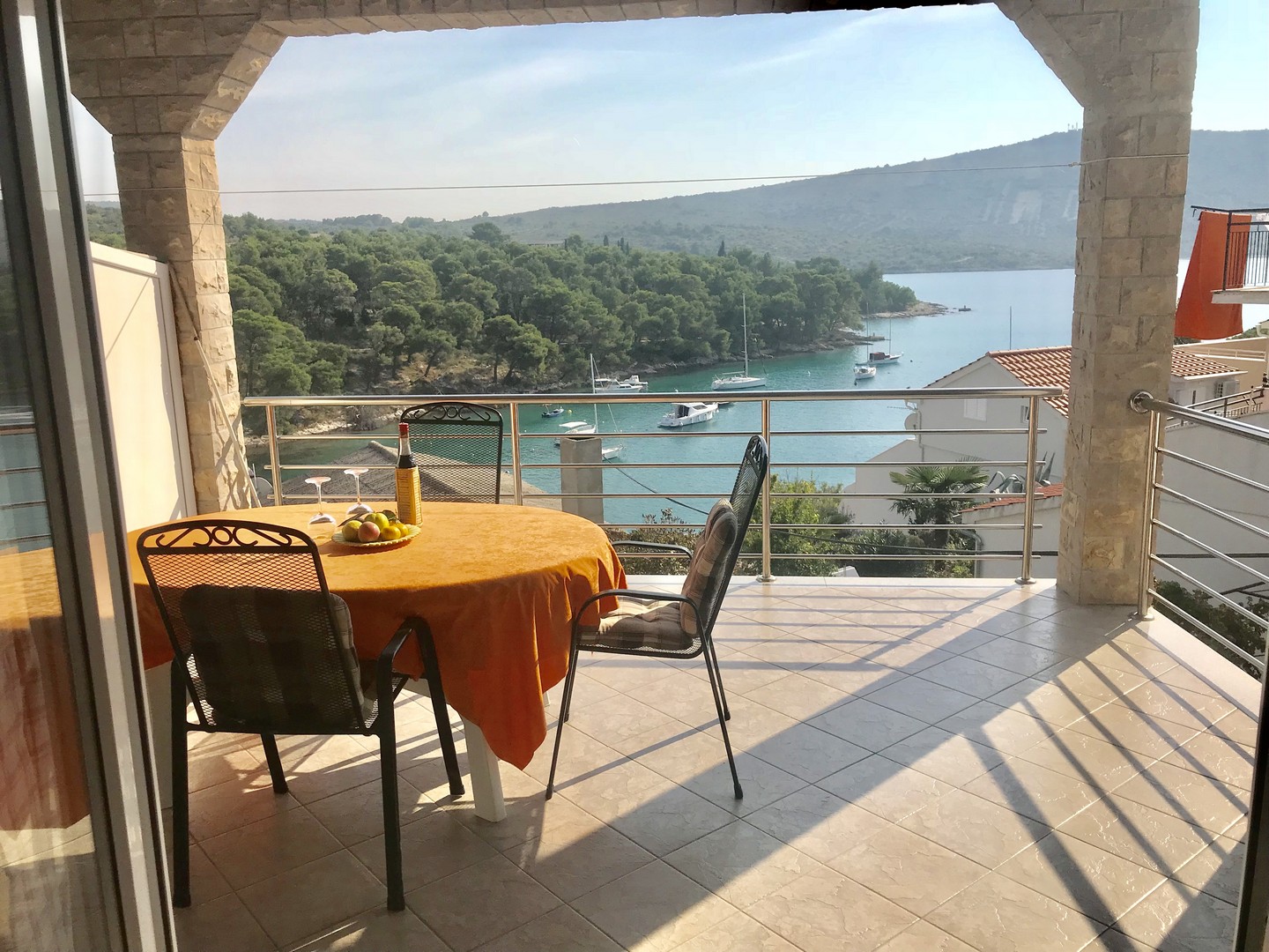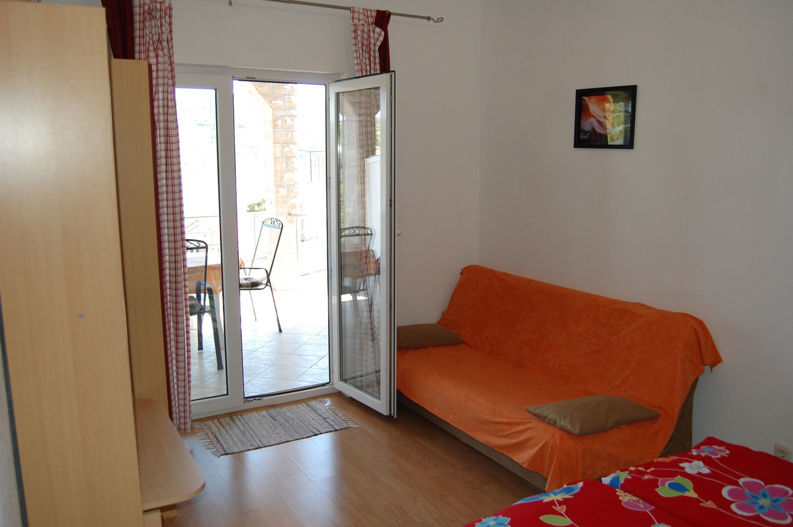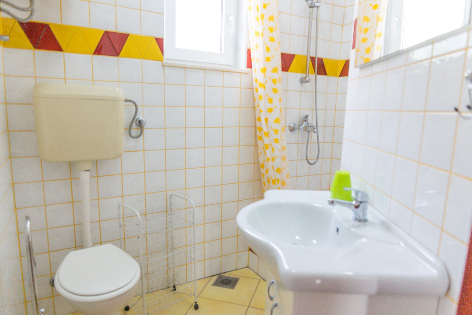65m2; due camere da letto, la prima delle quali ha un letto matrimoniale e un divano letto, e la seconda camera ha due letti singoli; Cucina con sala da pranzo, bagno con WC, balcone con vista sul mare (l'uscita dal balcone è possibile solo dalla prima camera da letto), aria condizionata, TV satellitare, Wi-Fi, primo piano, parcheggio