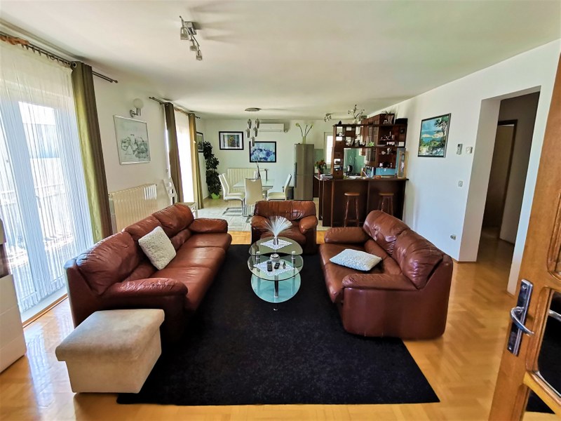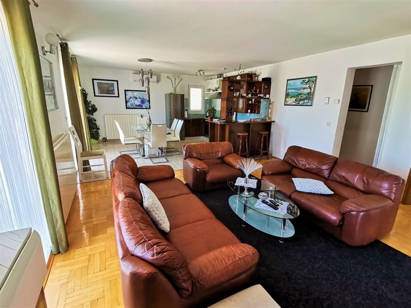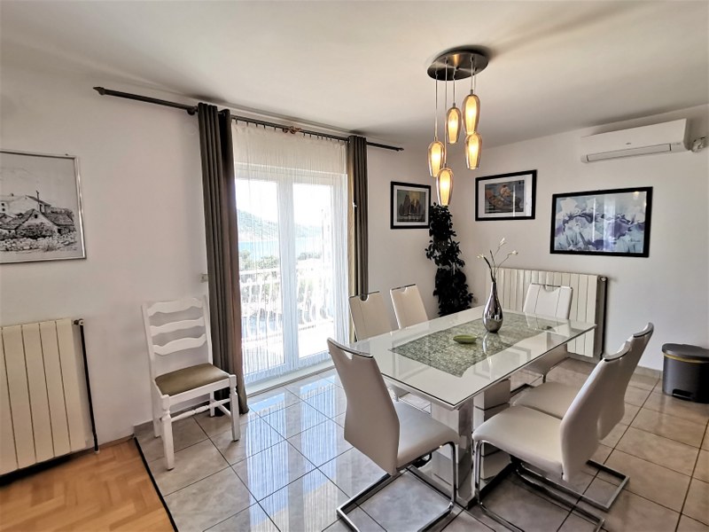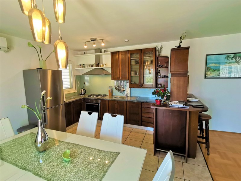 L'appartamento e composto da tre camere da letto, un ampio soggiorno, cucina con stufa,frigorifero, stoviglie. All'esterno c'e una bellissima terrazza con posti a sedere e vista mare.