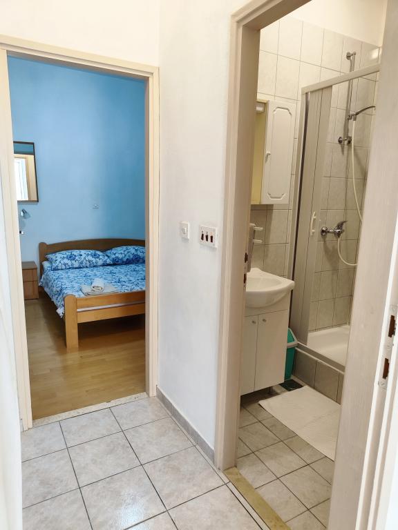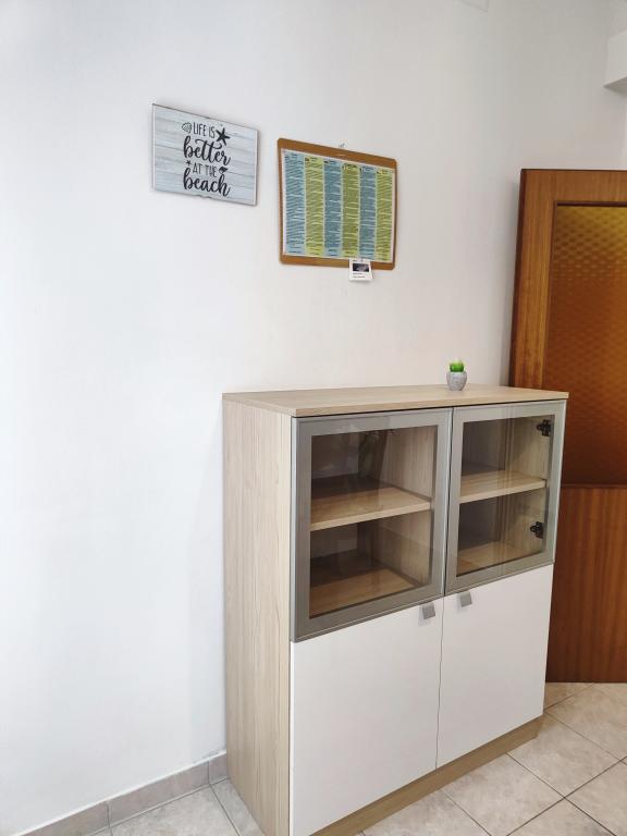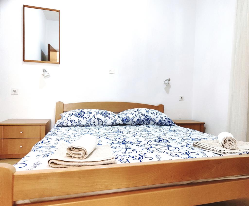 Appartamento di 40 m2, camera da letto con letto matrimoniale e letto singolo, cucina, bagno con wc, balcone, aria condizionata, TV, parcheggio, a 10 metri dalla spiaggia.