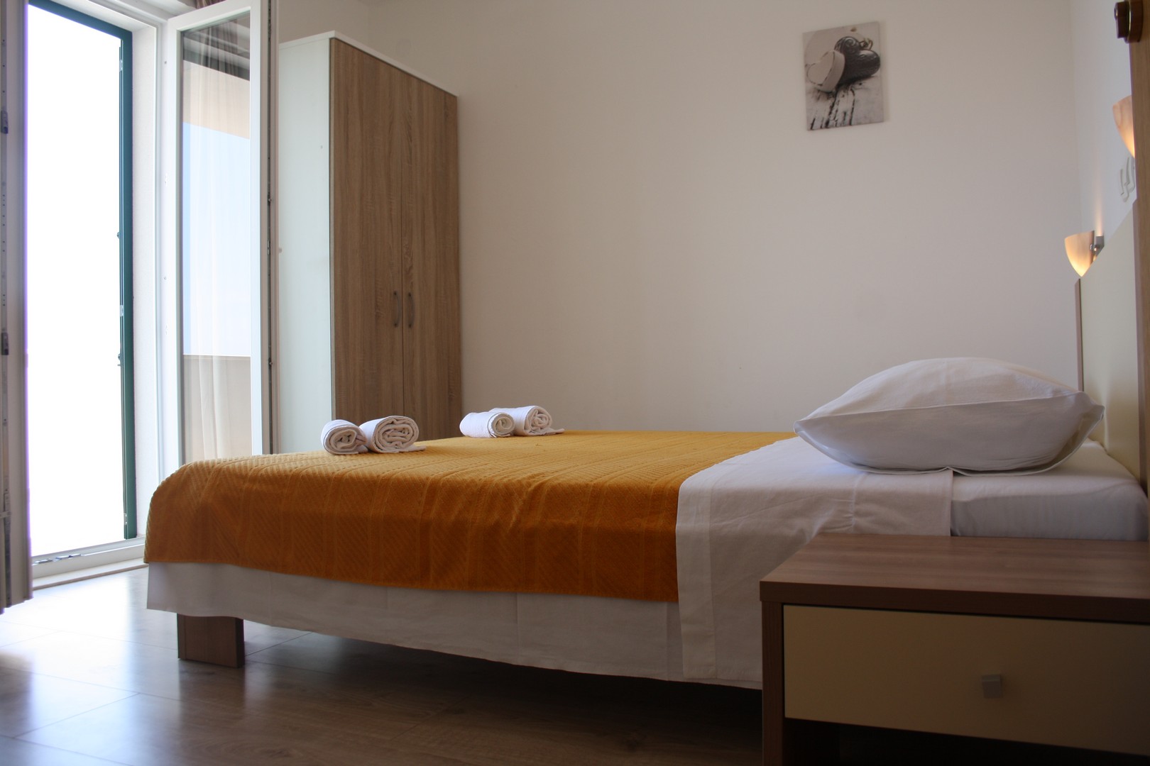 due camere da letto con letto matrimoniale, cucina con soggiorno, letto aggiuntivo per due persone, bagno con WC, balcone, aria condizionata, TV, Wi-Fi, parcheggio, a 250 metri dalla spiaggia e 400 metri dal centro