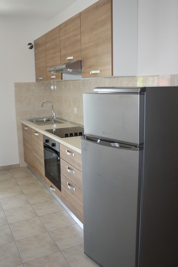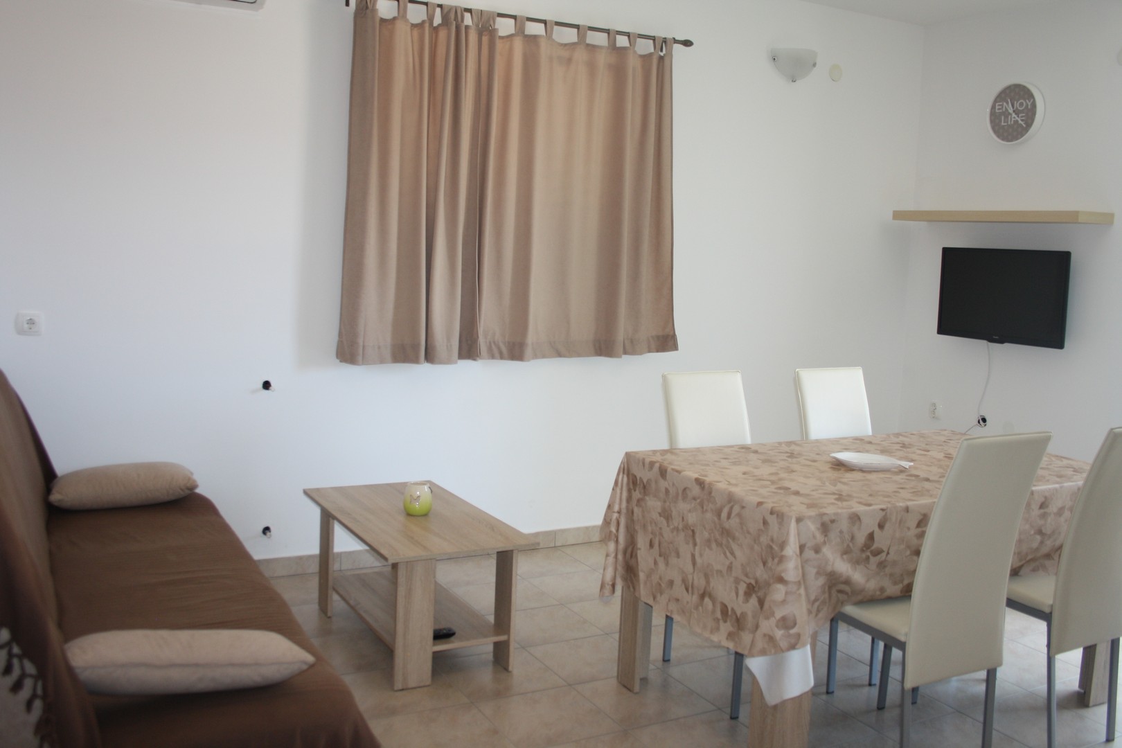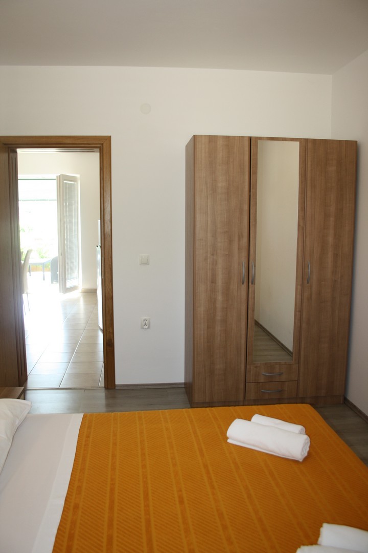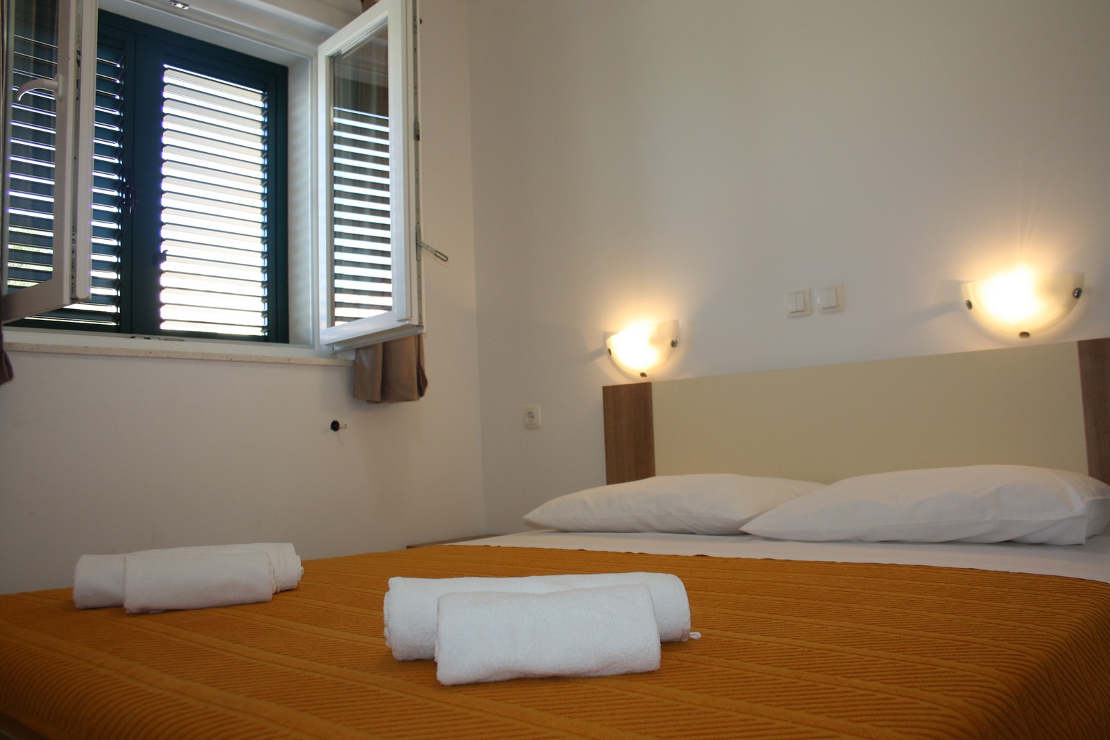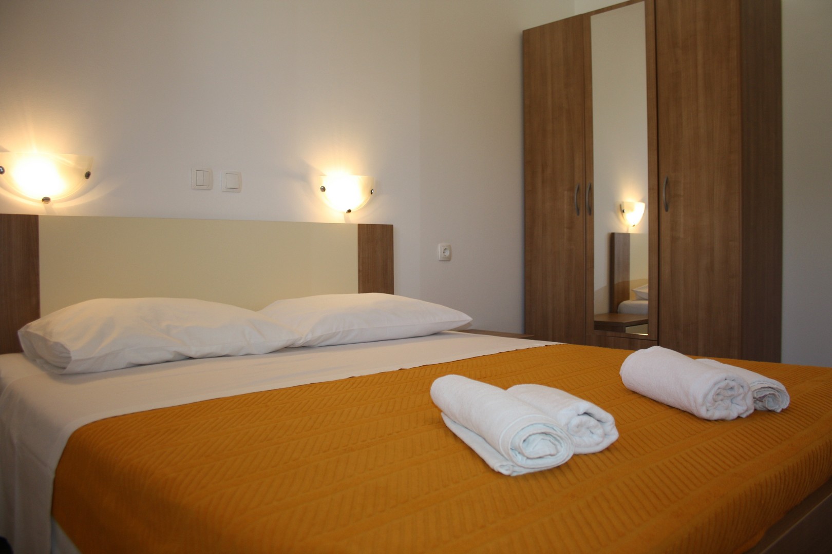 due camere da letto con letto matrimoniale, cucina con soggiorno, letto aggiuntivo per due persone, bagno con WC, terrazzo, aria condizionata, TV, Wi-Fi, parcheggio, a 250 metri dalla spiaggia e 400 metri dal centro