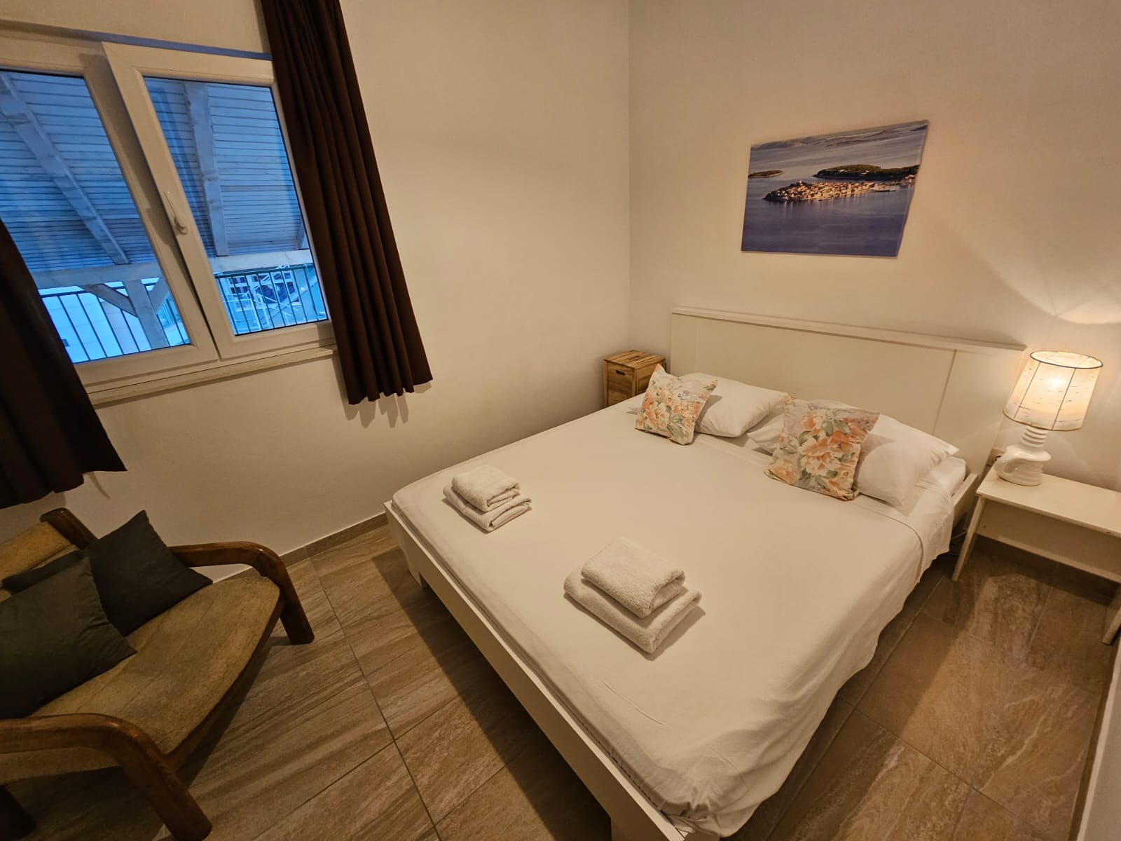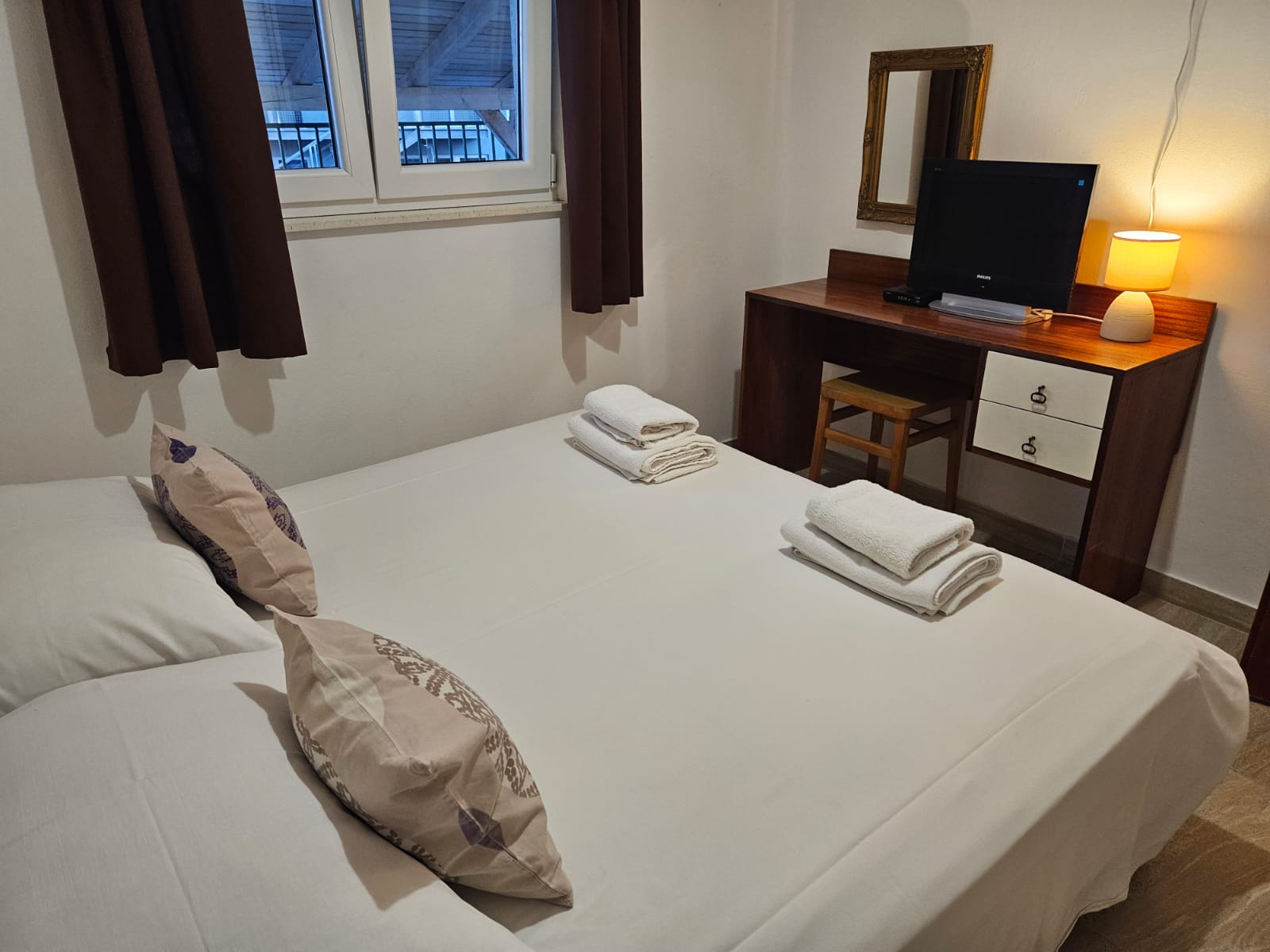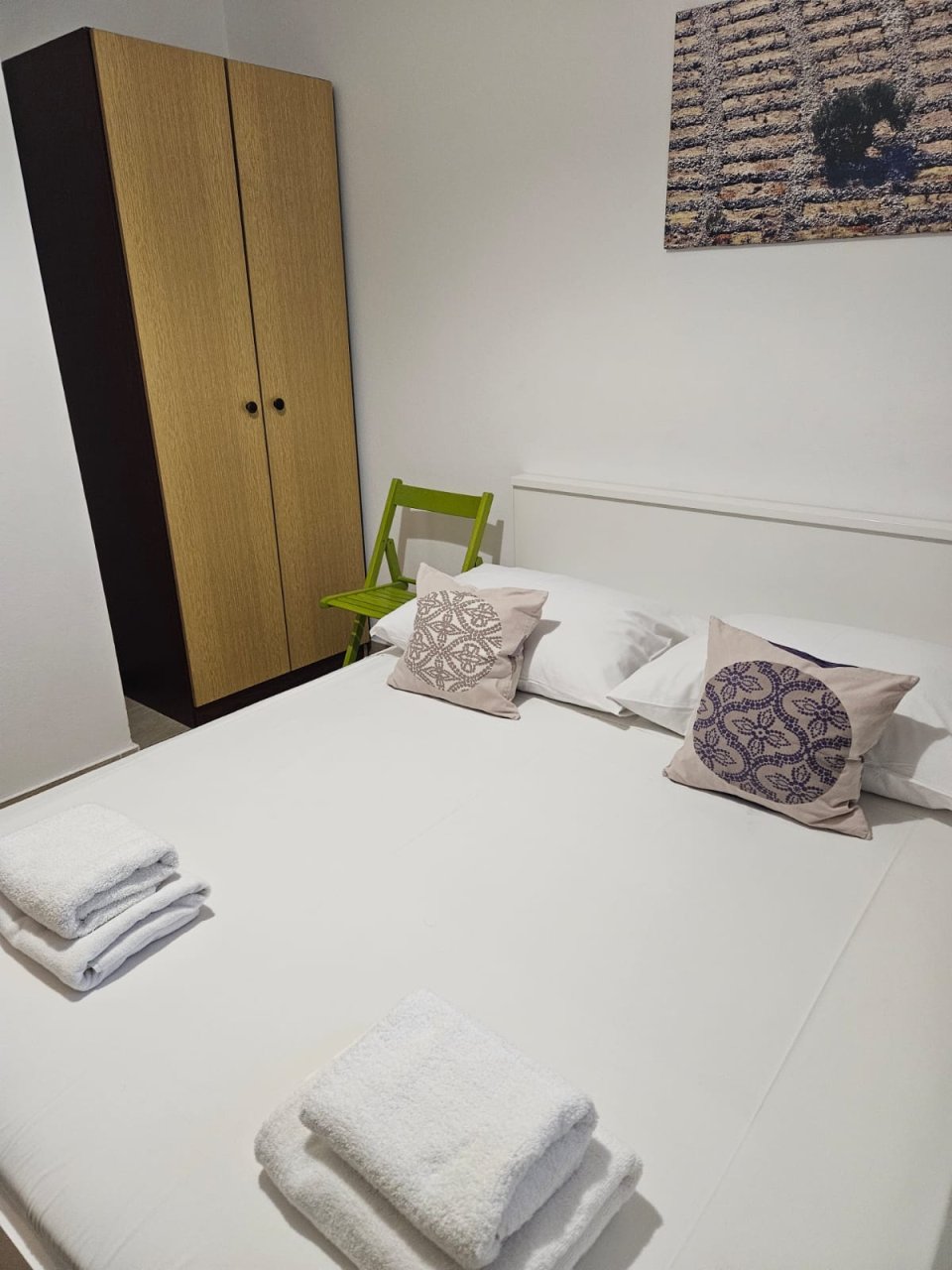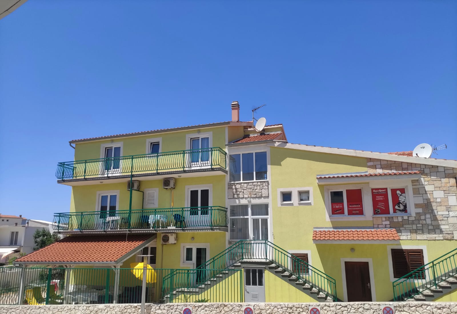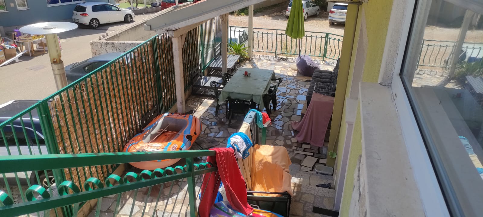 Appartamento con terrazza ca. 250 m dal mare e ca. 300 m dal centro di Primošten, due camere separate con letti a castello per 2 persone, cucina, bagno con wc e un bagno aggiuntivo, aria condizionata, TV satellitare, Wi-Fi, piano terra, parcheggio