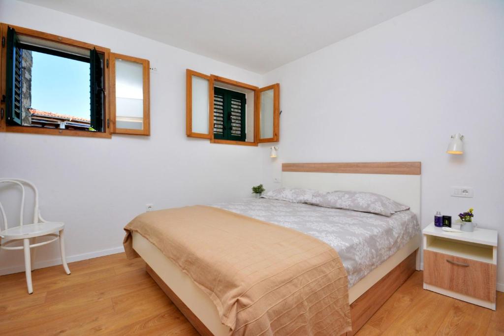 Due appartamenti 2 + 2 nel centro storico di Primosten in una casa in pietra mediterranea. Alloggi recentemente rinnovati di alto livello. A 50 m dal mare e dalla spiaggia.