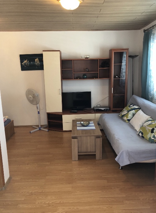 Appartamento con una camera separata e un letto supplementare nel soggiorno.