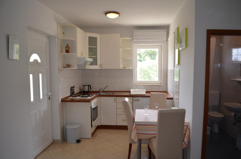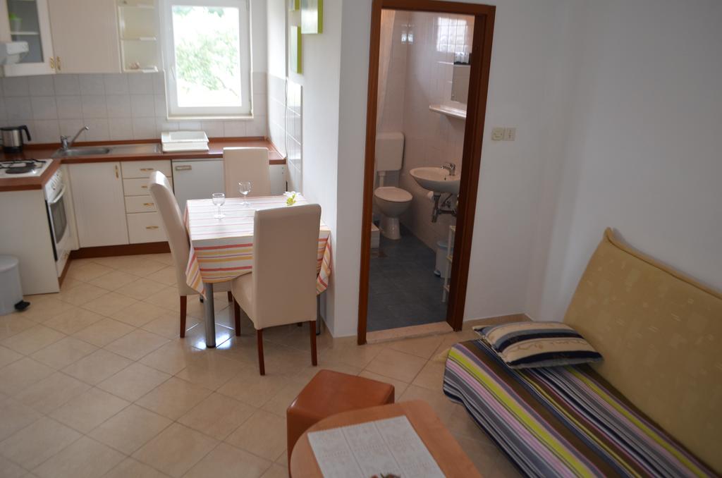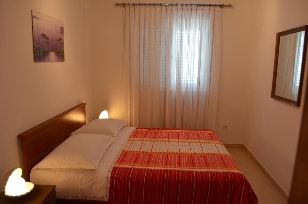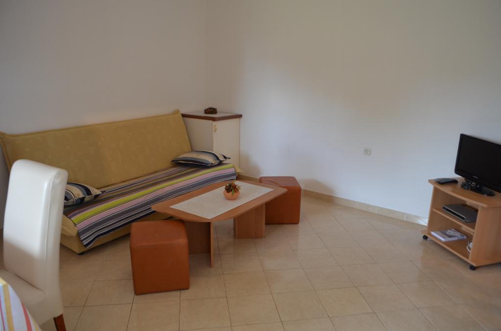 Sypialnia z podwójnym łóżkiem, pokój dzienny z rozkładaną sofą, kuchnia, łazienka z WC, taras, klimatyzacja, telewizja satelitarna, Wi-Fi, parter, miejsce parkingowe.